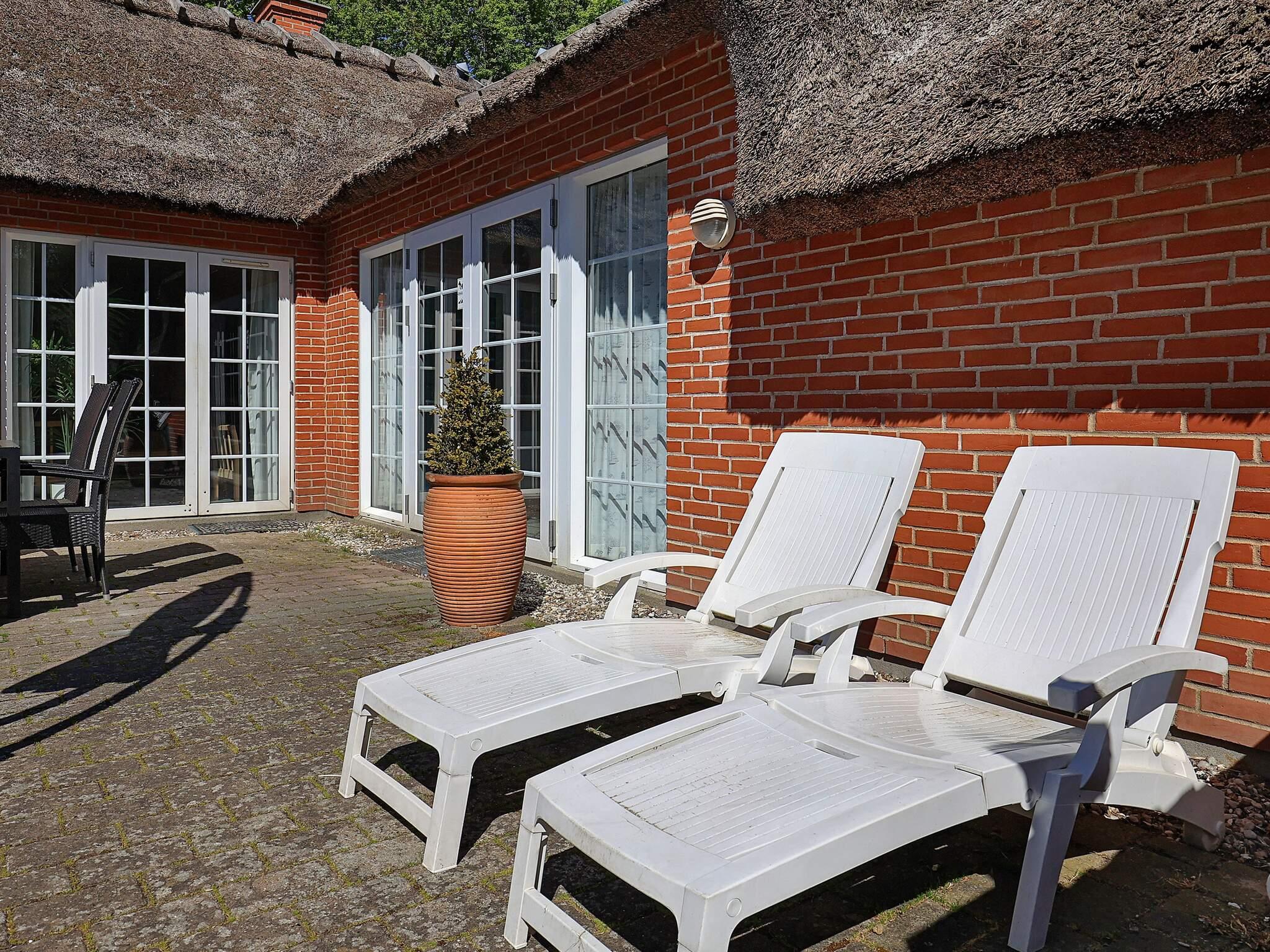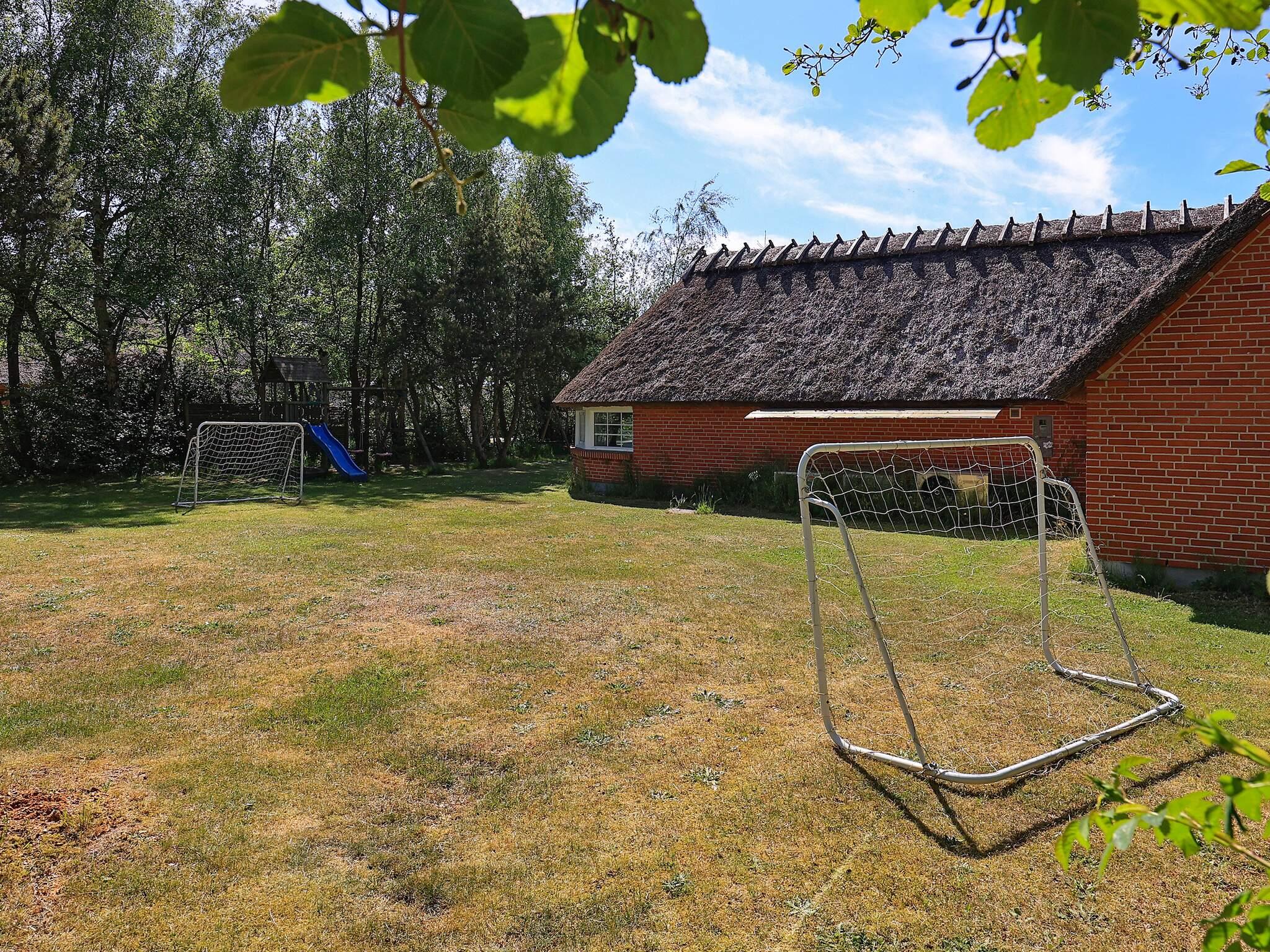 Huset ligger på en stor grund med sandkasse og gynge til børnene. Til de voksne er der hele 80 m² åben terrasse at slappe af på.