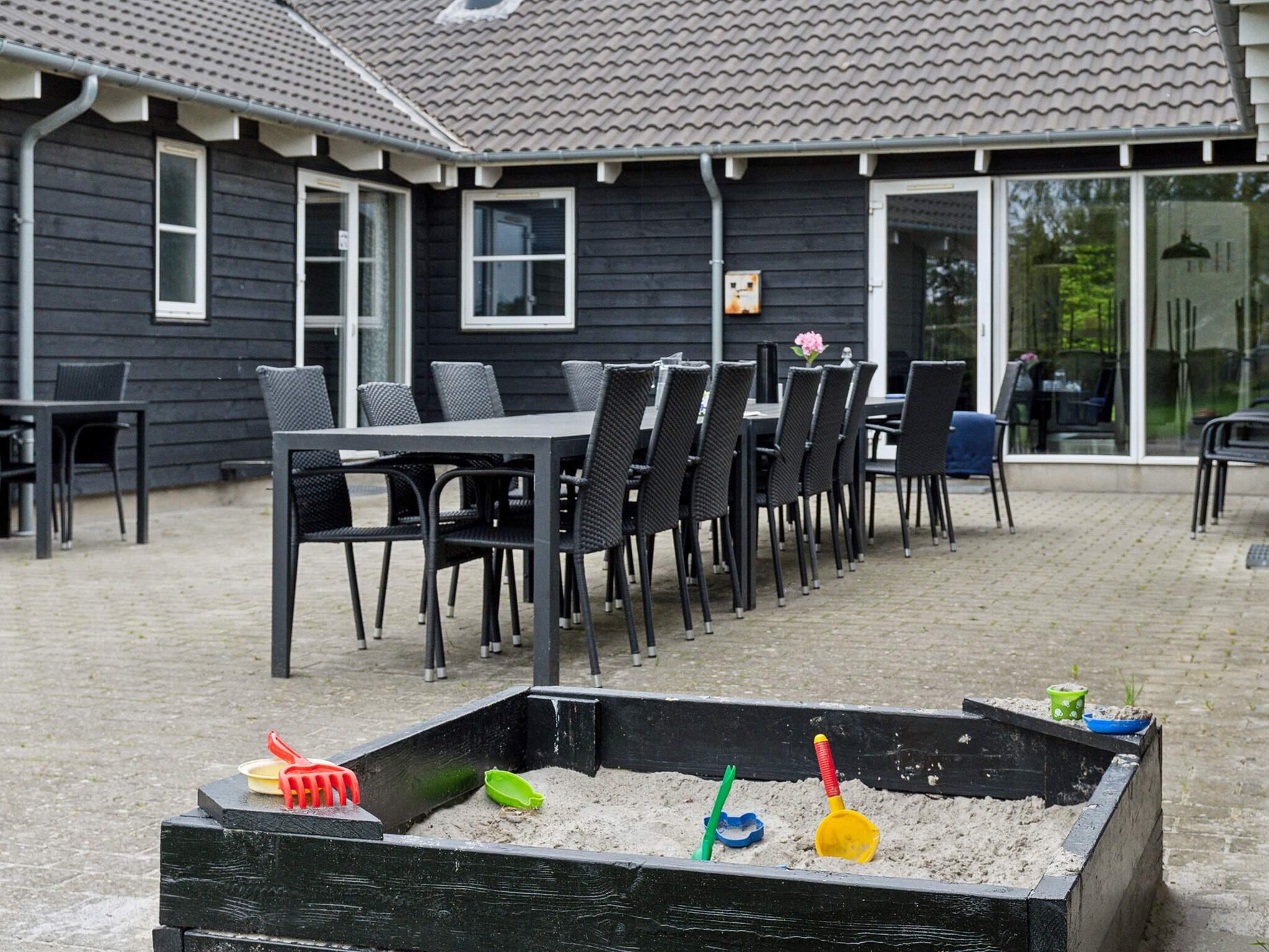 De små feriegæster er der også tænkt på – huset har 2 barnesenge, 2 højstole, og udenfor finder I gyner, sandkasse og legestativ.