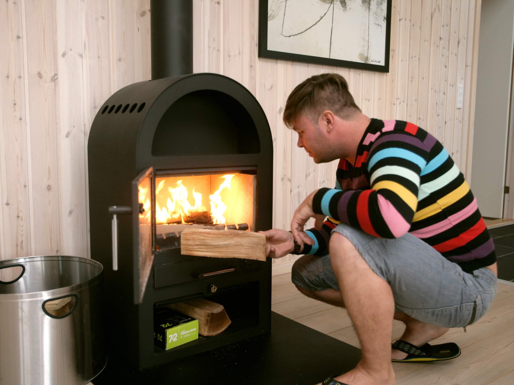 1 Opholdsstue: Brændeovn, stereoanlæg med cd, dvd-afspiller, Chromecast, tv, kabel-tv, høj stol