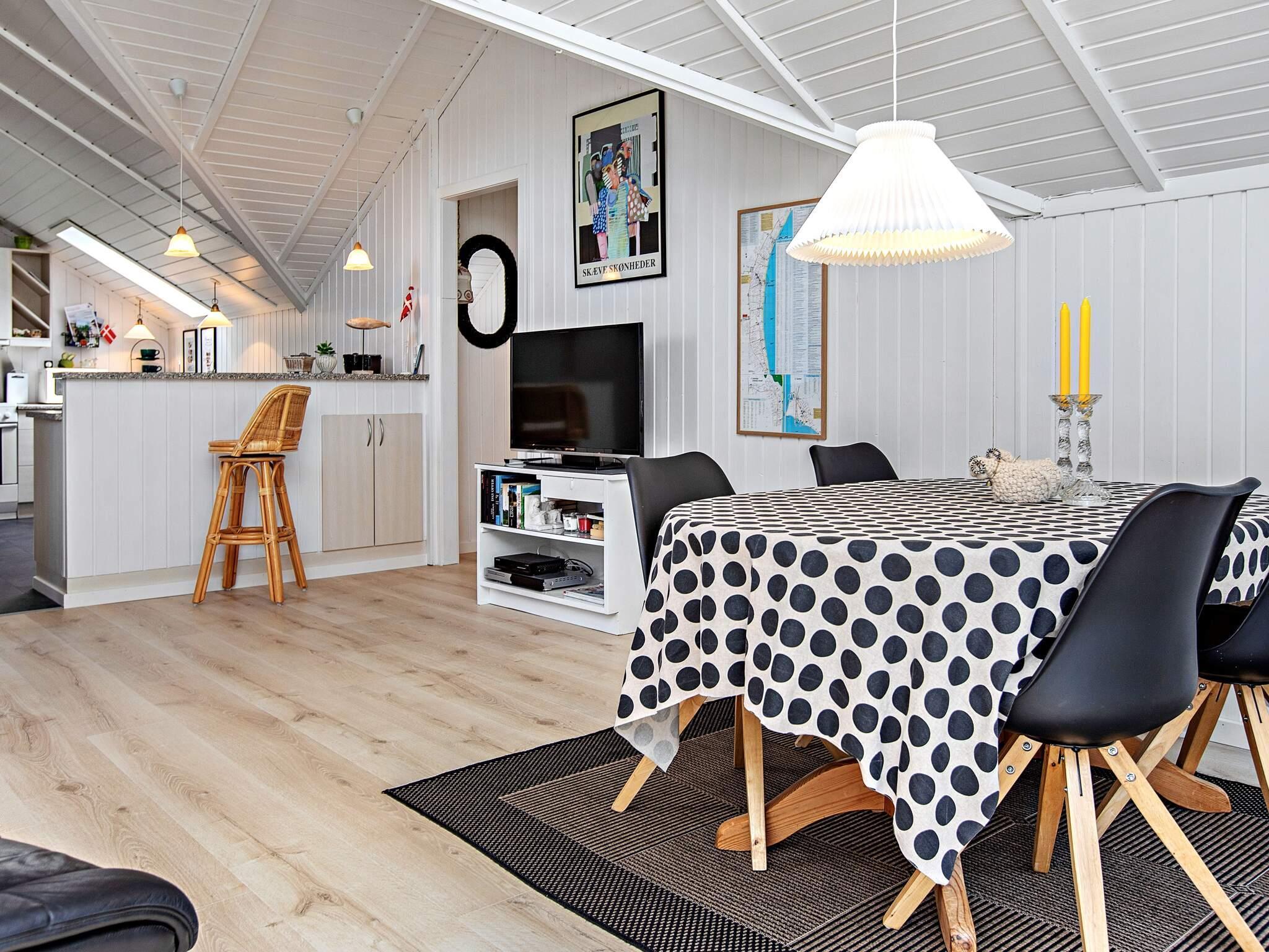 Moderniseret og velindrettet sommerhus i roligere område med ca. 500 meter til en af Danmarks bedste badestrande. Huset har lyst åbent køkken til spise- og opholdsstue. 3 værelser, hvor sengefordelingen er en dobbeltseng, to enkeltsenge og en køjeseng med to sovepladser. Der er gratis trådløst internet, tv med tyske og danske kanaler, brændeovn og luft/luft varmepumpe. Der er ydermere opvaskemaskine og vaskemaskine. Fra stuen er der udgang til dejlig stor træterrasse, hvor I kan grille og hygge jer. Ligesom der er udgang til terrasse og naturgrunden fra det store soveværelse. Udlejes ikke til ungdomsgrupper.
