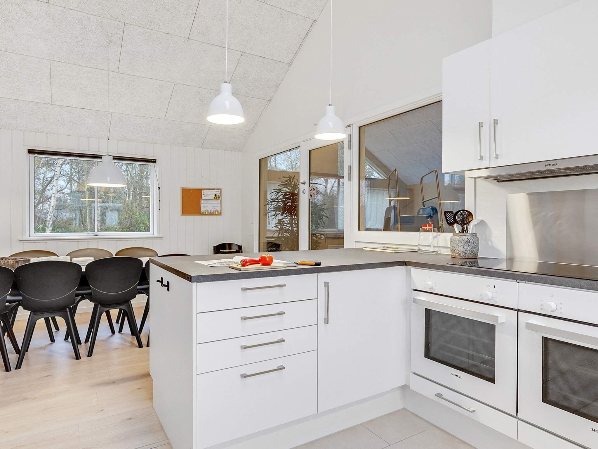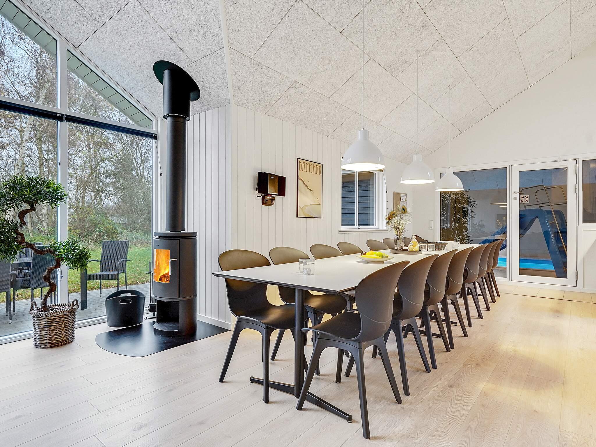 Midt i huset finder I køkkenet/alrummet og sommerhusets brændeovn, som kan varme og sprede ekstra hygge på kolde dage. Fra det lange spisebord kan du holde øje med dem, der svømmer i poolen, og i sofahjørnet kan du nyde en god bog eller film.