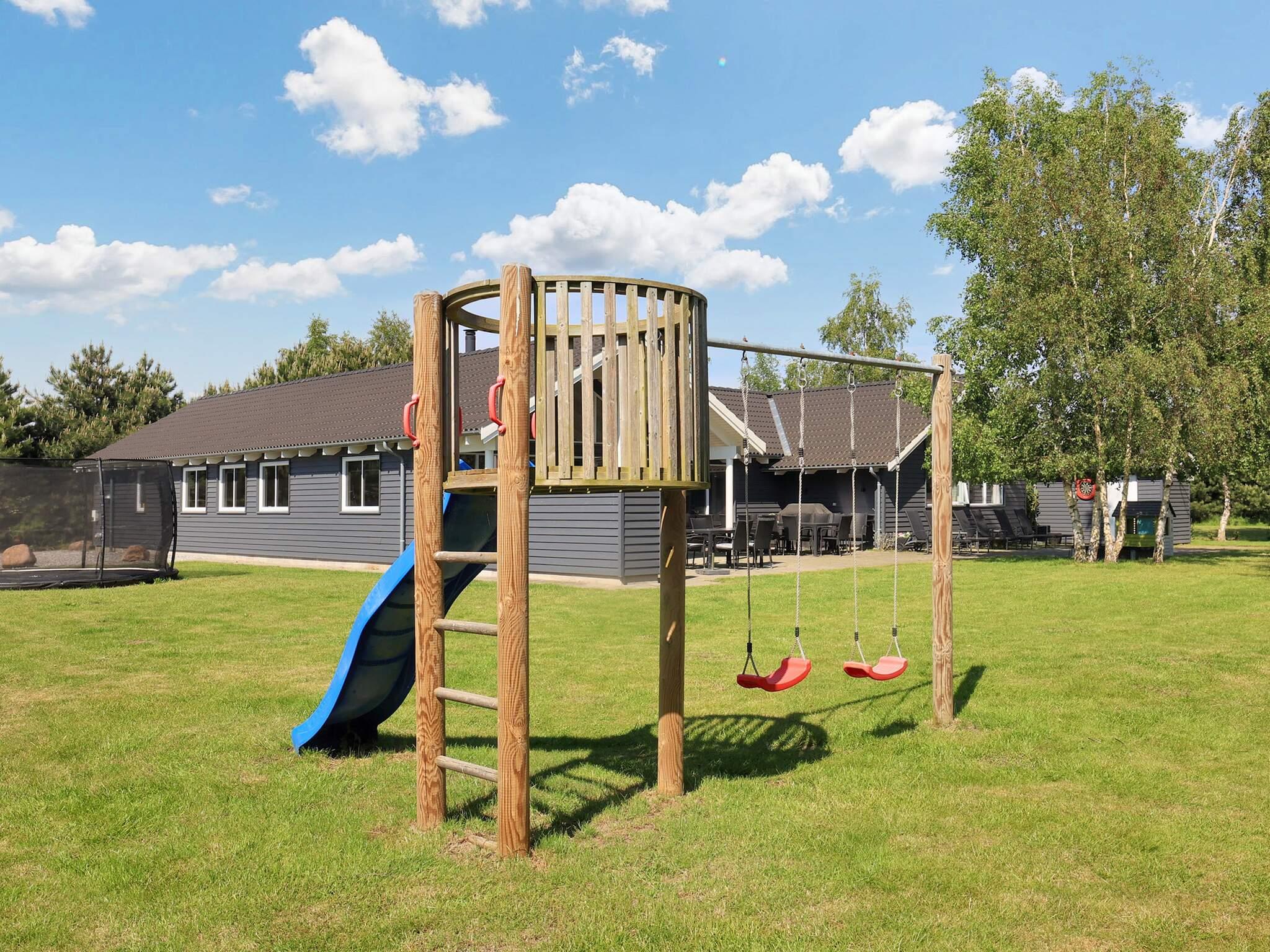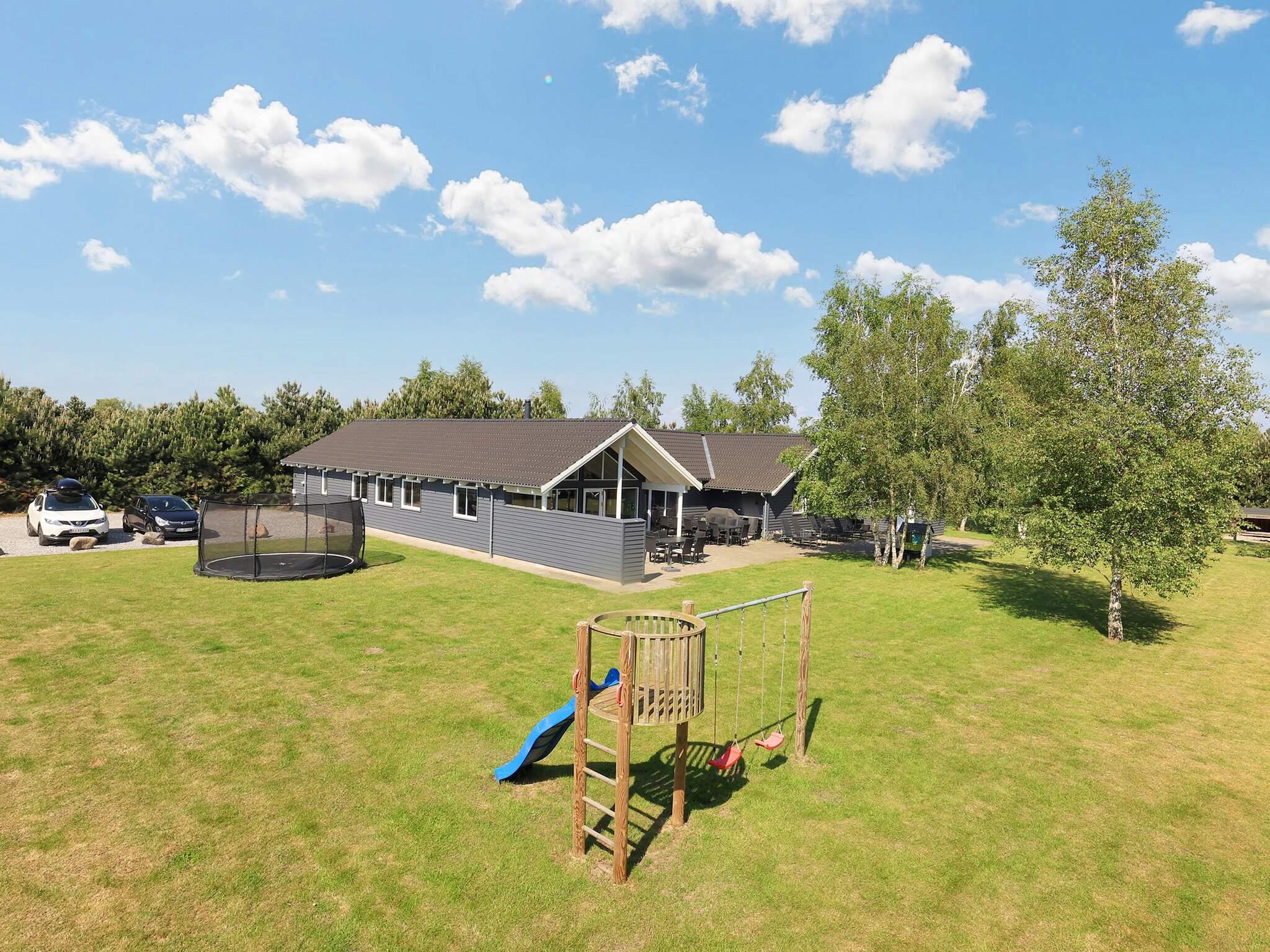 Skulle vejret lokke til udendørsaktiviteter er der både dart, volleyballnet, fodboldmål, legetårn, sandkasse, skak og trampolin (benyttes på eget ansvar/forsikring) samt mange andre spil. Derudover trækvogn som f.eks. kan bruges på turene til stranden. På den bageste del af grunden er der opført et shelter med plads til 6 personer samt en bålplads.