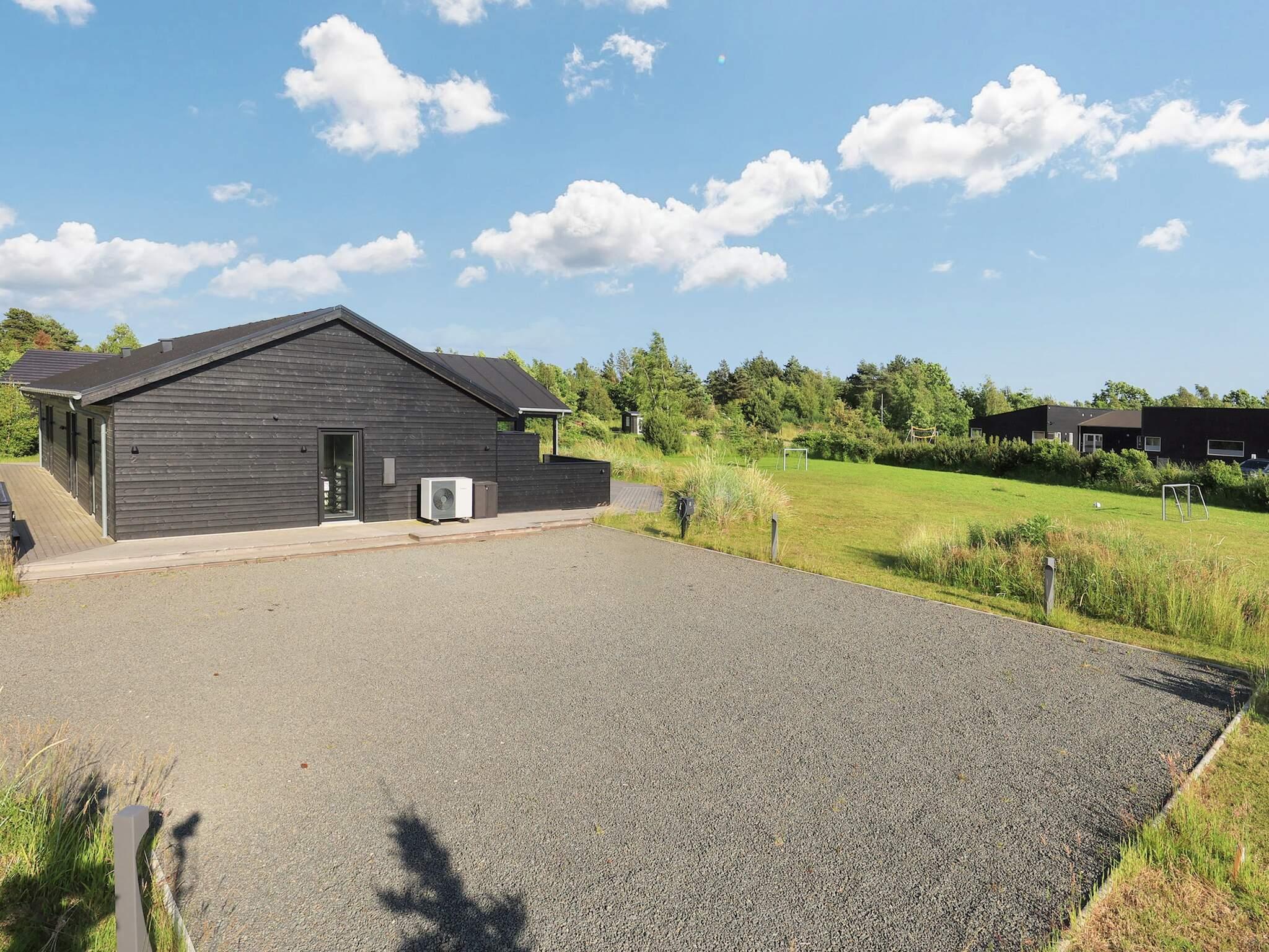 Der er fire soveværelser med dobbeltsenge (180 cm), eget klædeskab og direkte udgang til den store træterrasse, samt tre hemse med hver to enkeltsenge. Huset har to badeværelser, et ekstra toilet, vaskemaskine, tørretumbler og gulvvarme overalt via energivenlig luft/vand varmepumpe. Fra terrasserne kan solen nydes hele dagen – syd- og vestvendte områder med grill og overdækkede hyggekroge med terrassevarmere, samt en østvendt terrasse til morgenkaffen. På den store naturgrund er der fodboldmål, rig plads til leg og to elbilopladere (type 2).