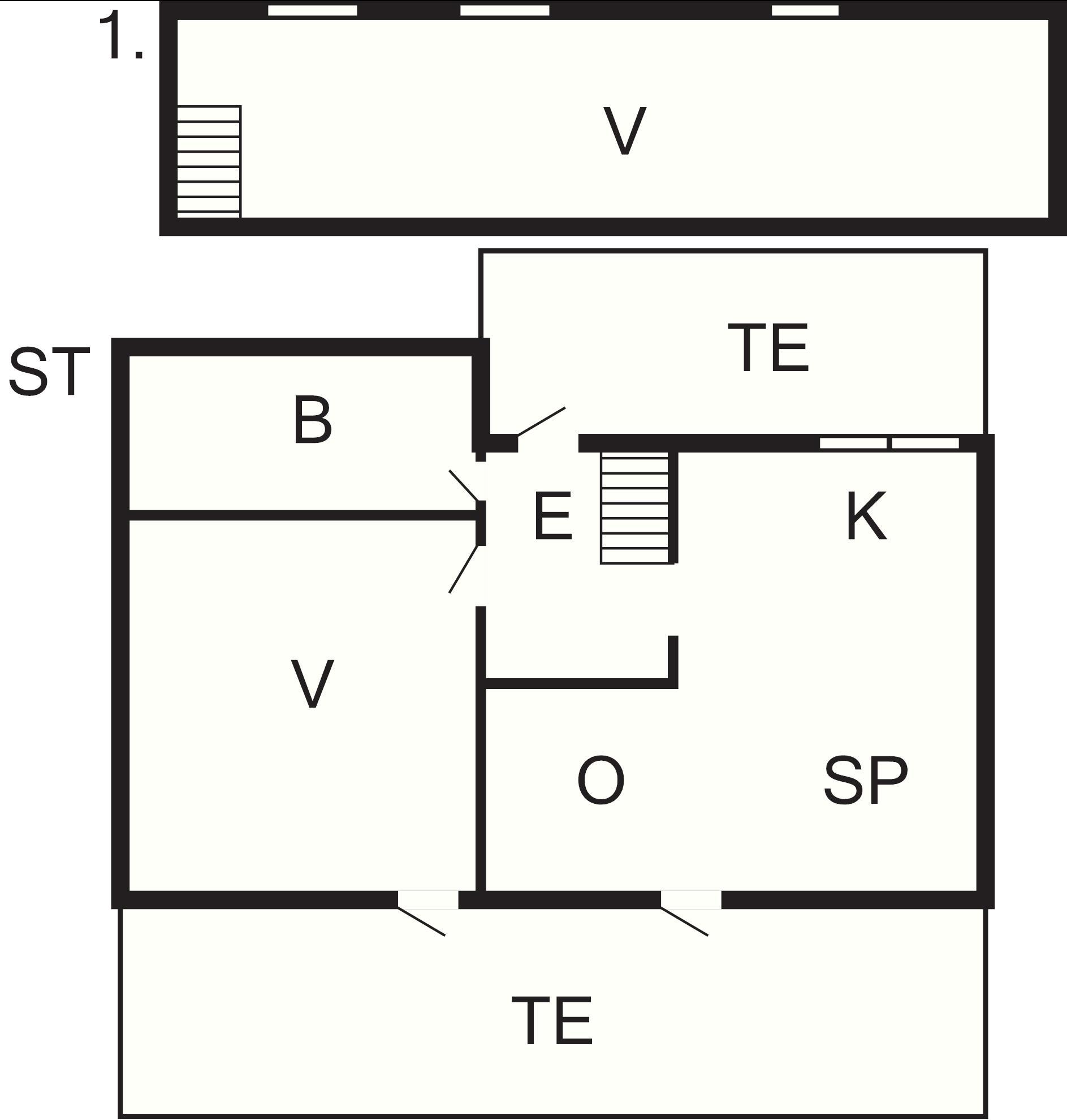 I stueplan finder I en entré, et veludstyret køkken med keramisk kogeplade, opvaskemaskine med mere, der er åbent til spisepladsen og en hyggelig stue. Her kan I samles til måltider eller slappe af foran tv'et, der byder på både danske og tyske kanaler. Der er også gratis trådløs internetadgang. Fra stuen er der direkte udgang til egen træterrasse, hvor I kan nyde grillfester og sommeraftener udendørs. Stueetagen indeholder også et soveværelse med dobbeltseng og et badeværelse med bruser.