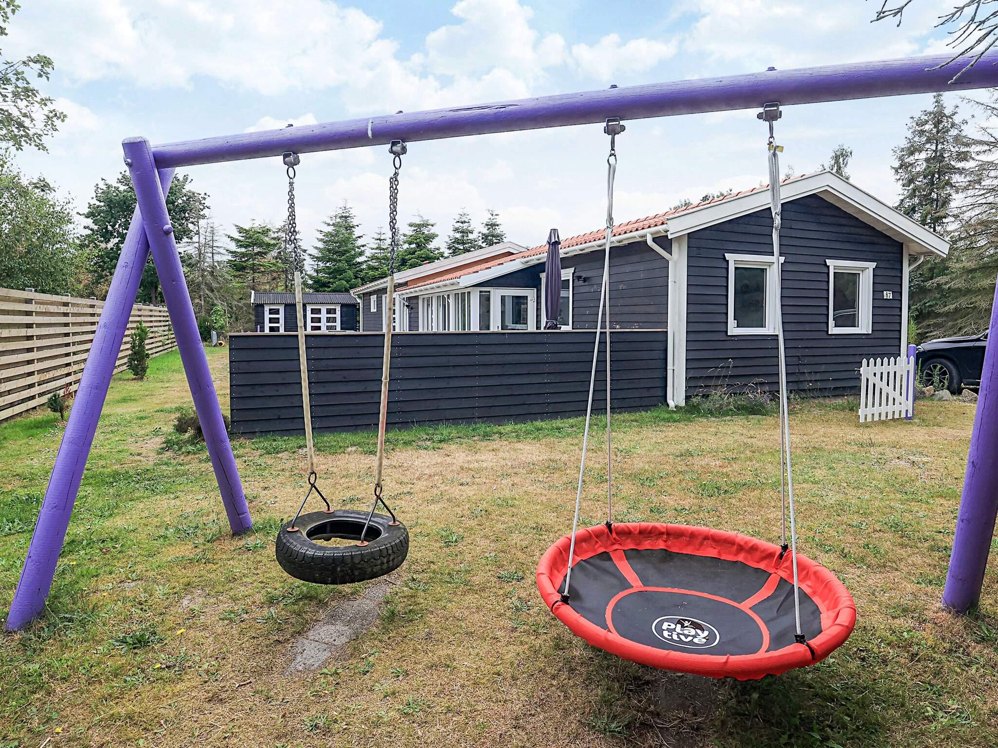 Solen kan nydes på en af de to træterrasser hvor der er havemøbler og solvognene samt kulgrill. På grunden er der masse af plads til leg og spil og til de små gæster er der gyngestativ.