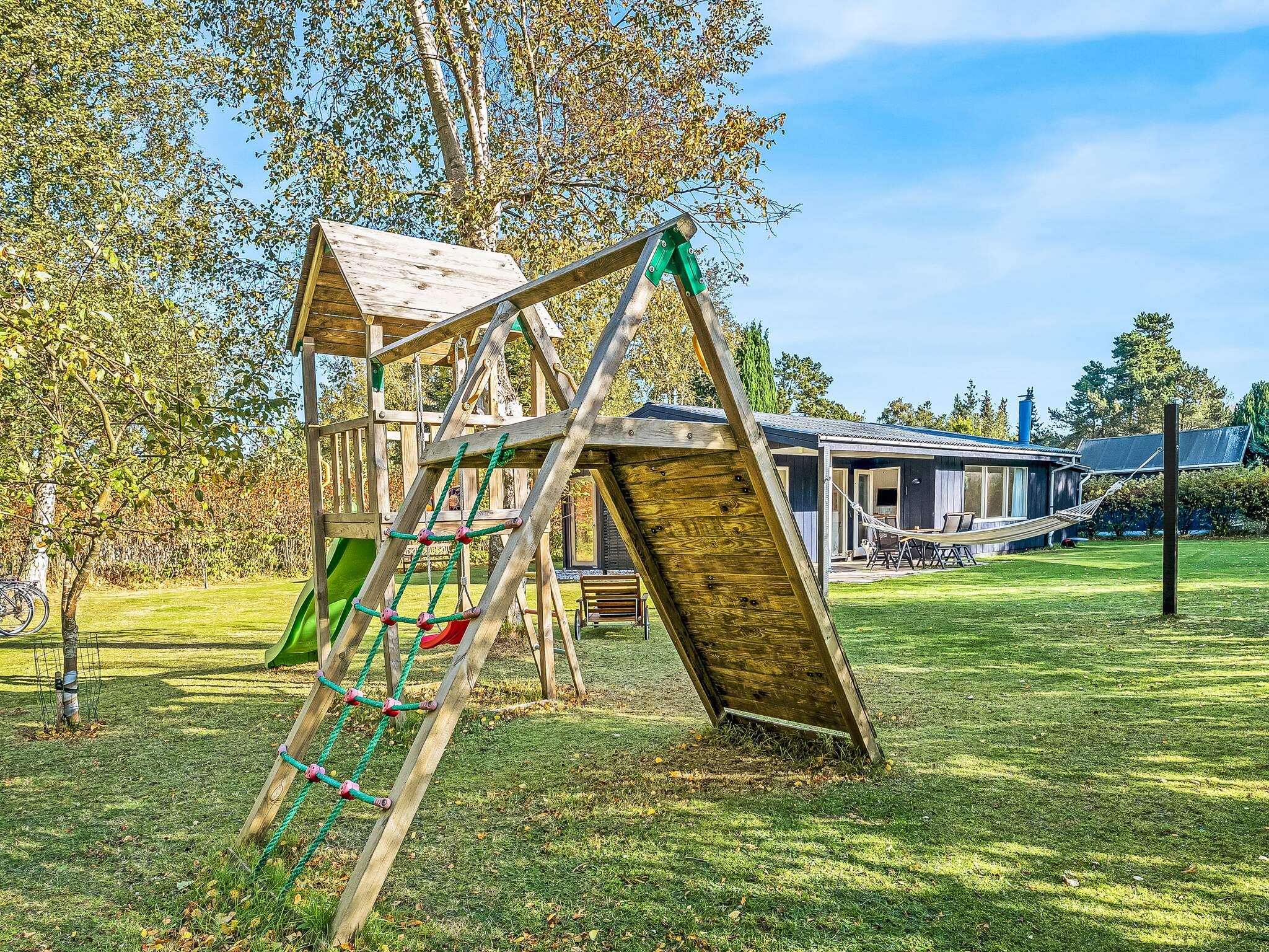 En meget hyggelig semi-overdækket terrasse med god plads til solbadning og afslapning, og når det er tid til at piske aftensmaden op, kan du gøre det på gasgrillen. Sommerhuset ligger på en 1000 m2 naturgrund, så der er god plads til leg og afslapning, og for børnene er der gynge og legerum med rutsjebane. Efter en lang dag på stranden kan du bruge den udendørs bruser (maj til oktober).