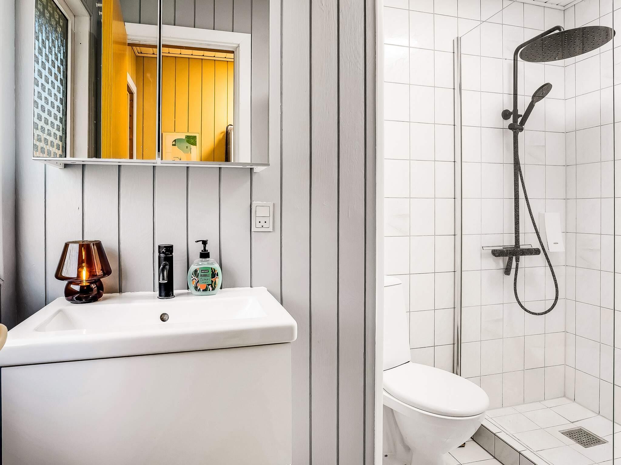 Huset byder på gratis internet og rummelig stue med TV og Chromecast samt brændeovn, der er perfekt til kolde aftener og giver en skøn hyggelig atmosfære. I stuen er der også en luft-til-luft varmepumpe og masser af brætspil til børn og sjæle. Køkkenet, som er åbent og forbundet med stuen, er veludstyret med induktionskomfur, køleskab med fryser, mikroovn, kaffemaskine, opvaskemaskine og vaskemaskine. Sommerhuset har tre soveværelser, alle med dobbeltsenge. Badeværelset har toilet, håndvask og bruser.