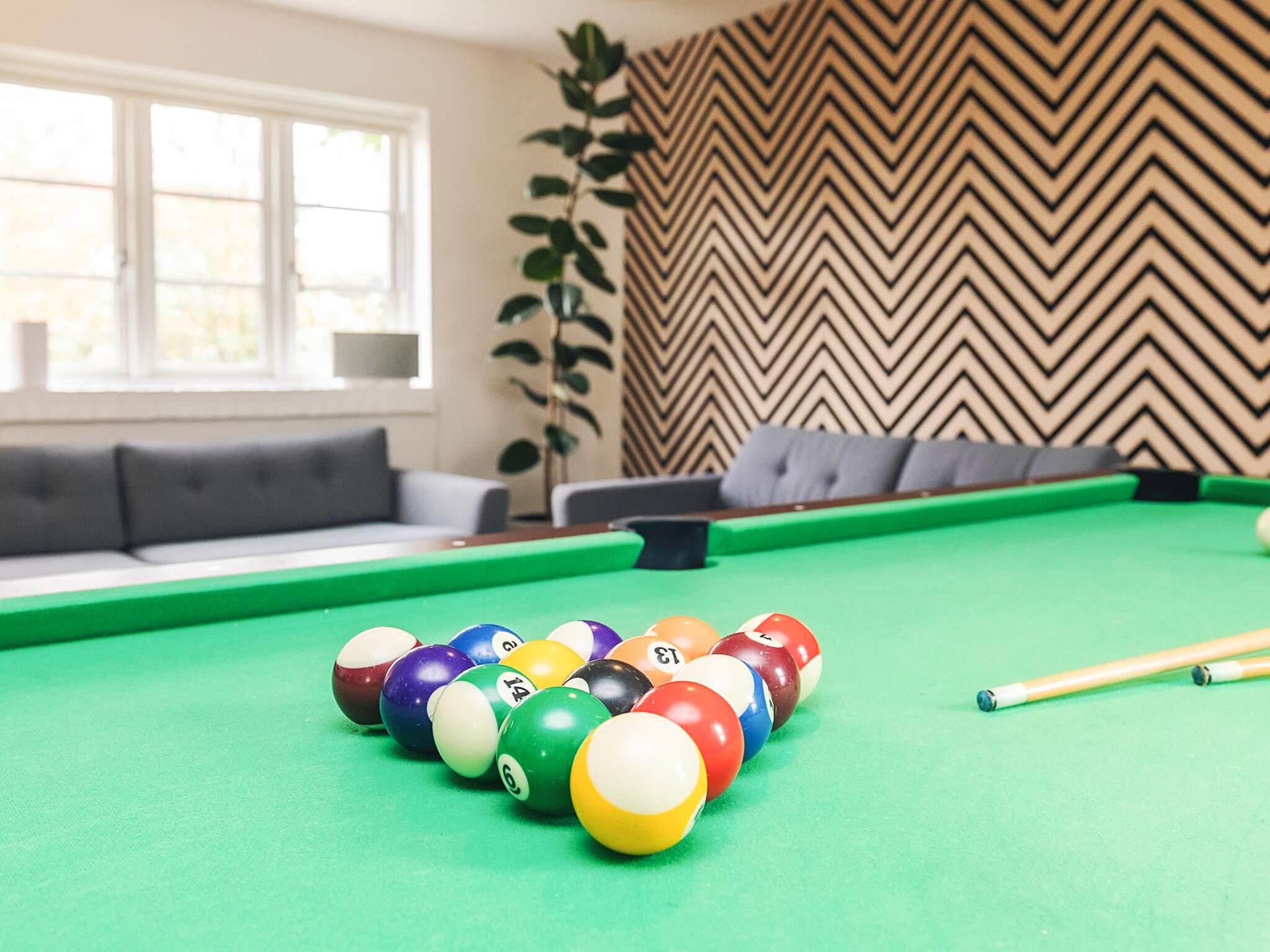 1 Opholdsstue: Bioethanolpejs, tv, billard, spillekonsol