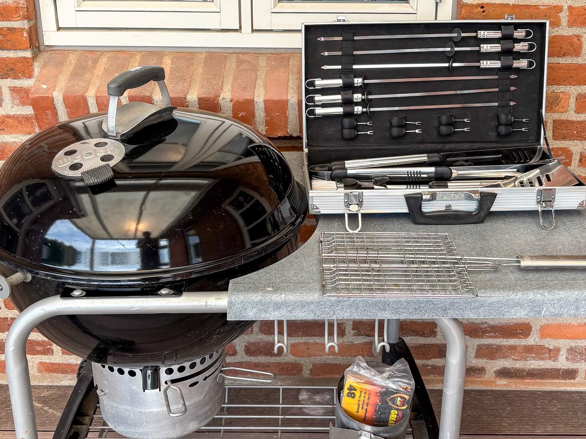 1 Udeareal: Havemøbler, liggestole, kulgrill, Indhegnet grund, Terrasse, bruser (udendørs), fodboldmål