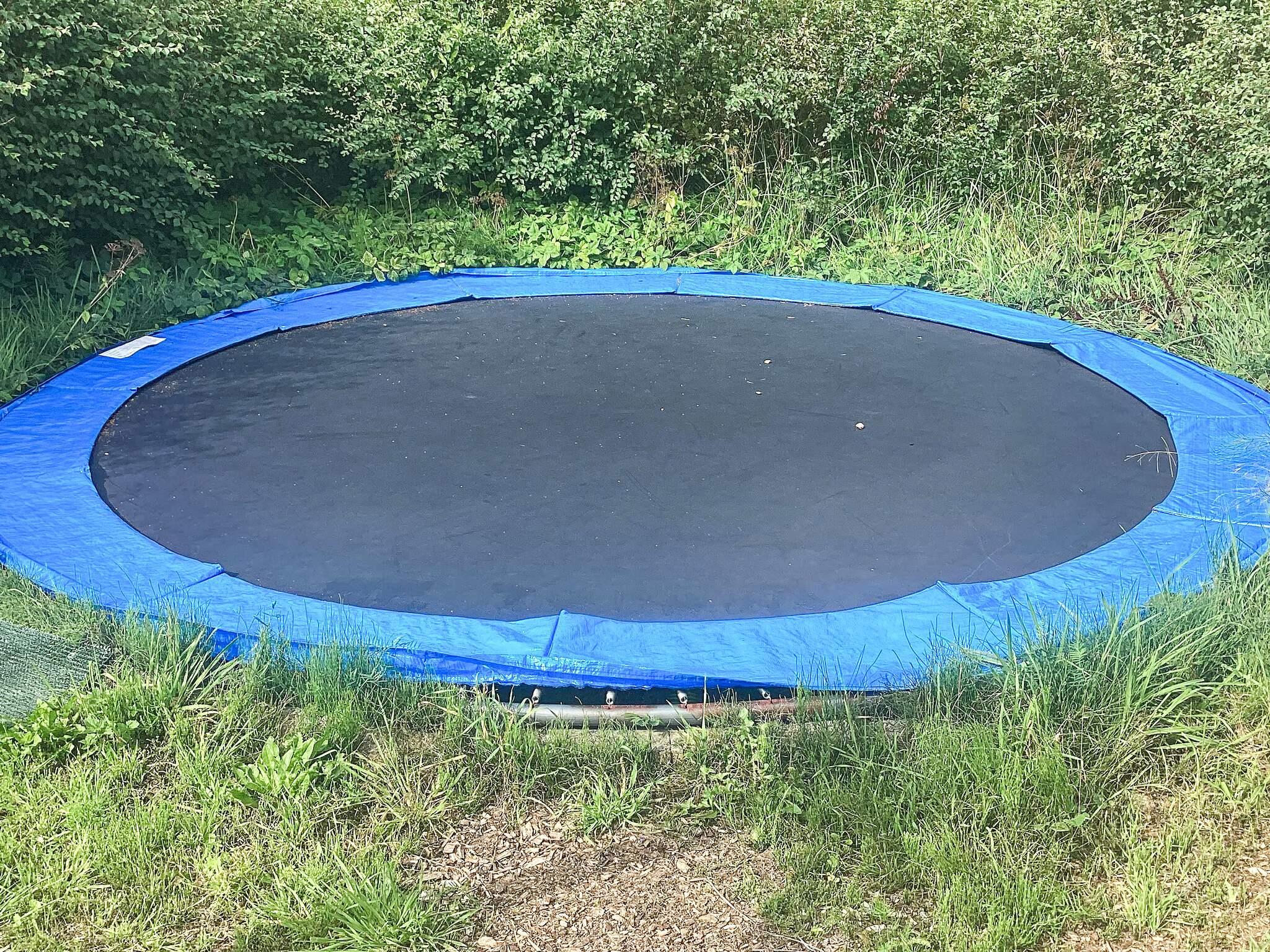 På grunden er der trampolin (benyttes på eget ansvar/forsikring), gynge og sandkasse. Masser af plads til udendørs leg og boldspil. Udlejes ikke til ungdomsgrupper.