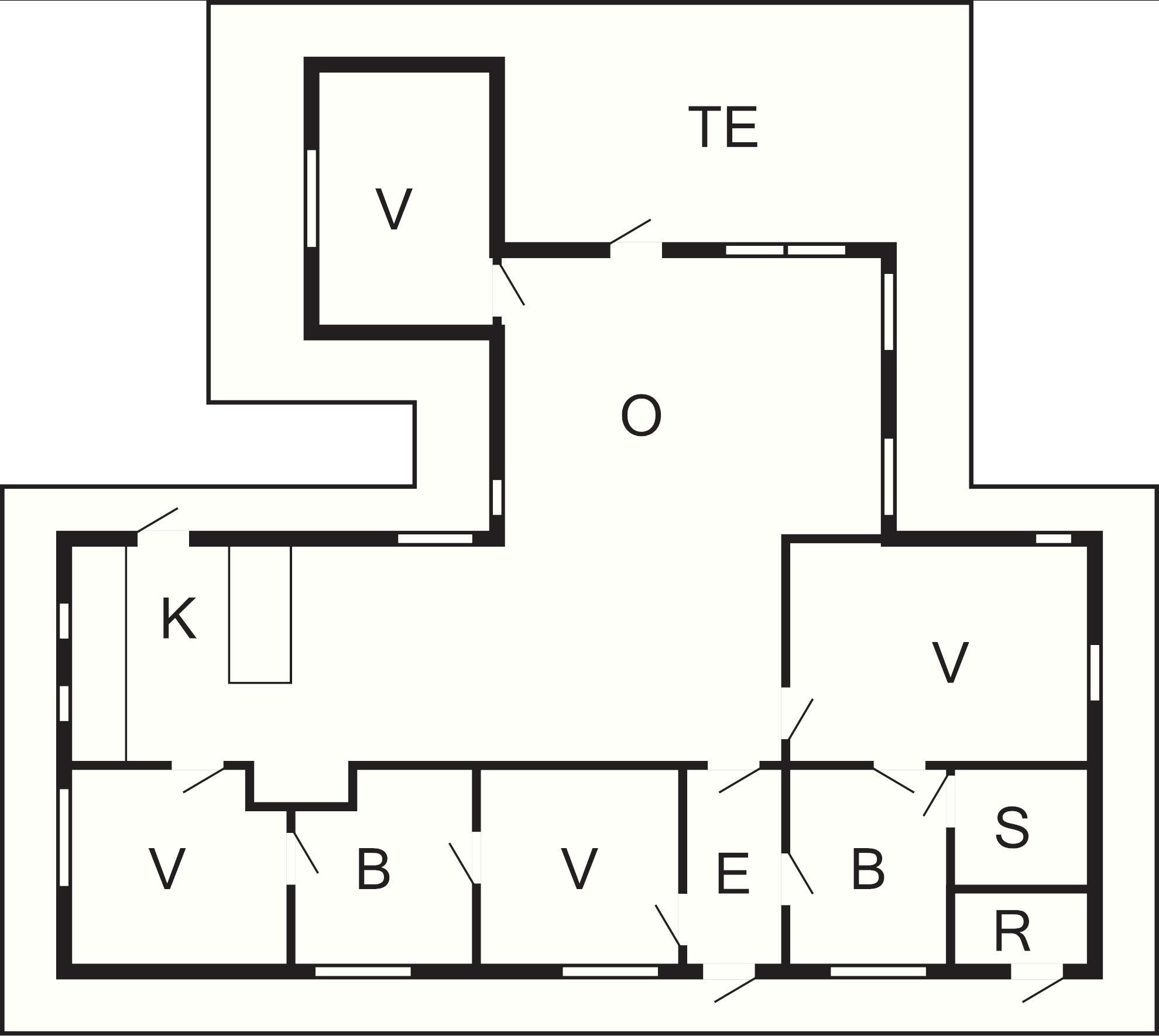 4 Soveværelser: (1DS)+(1DS)+(1DS+1K)+(1DS+1K), barneseng