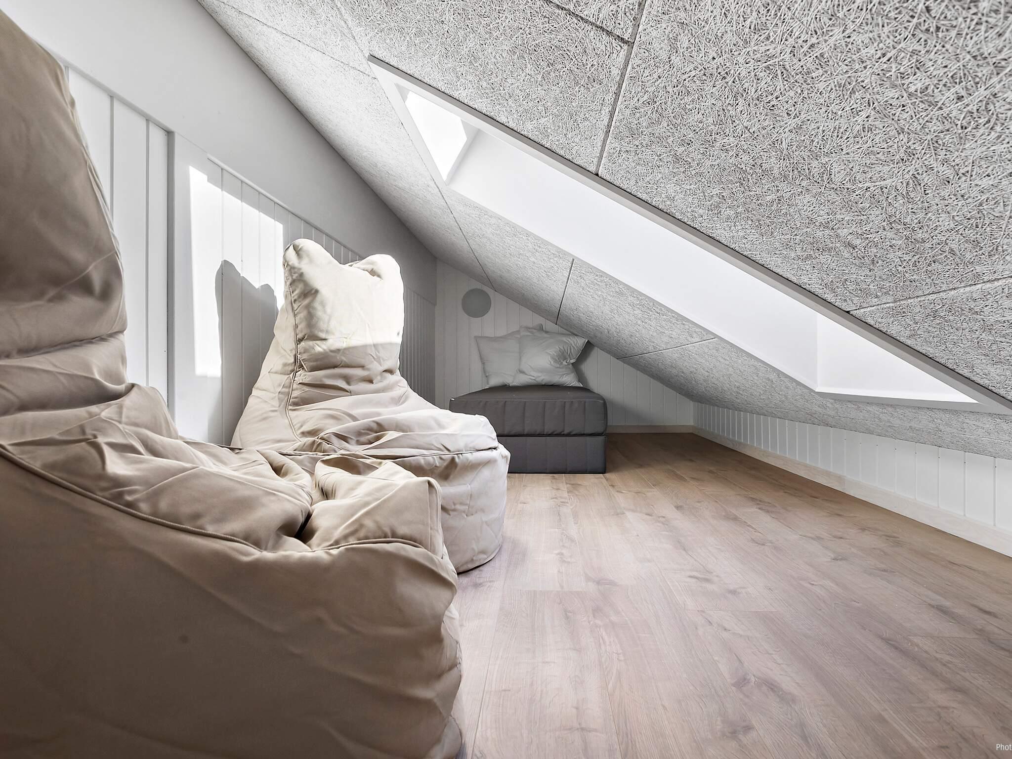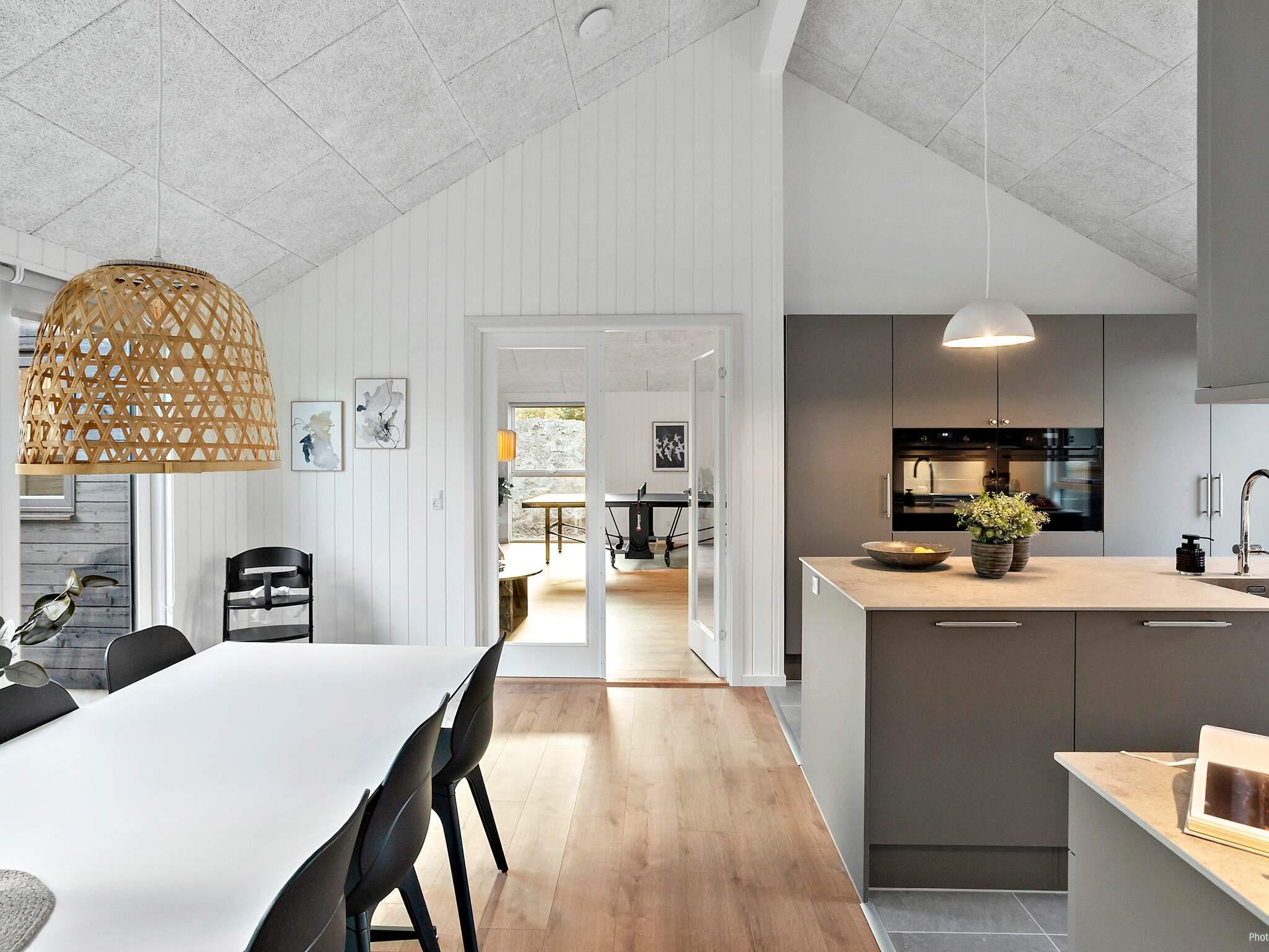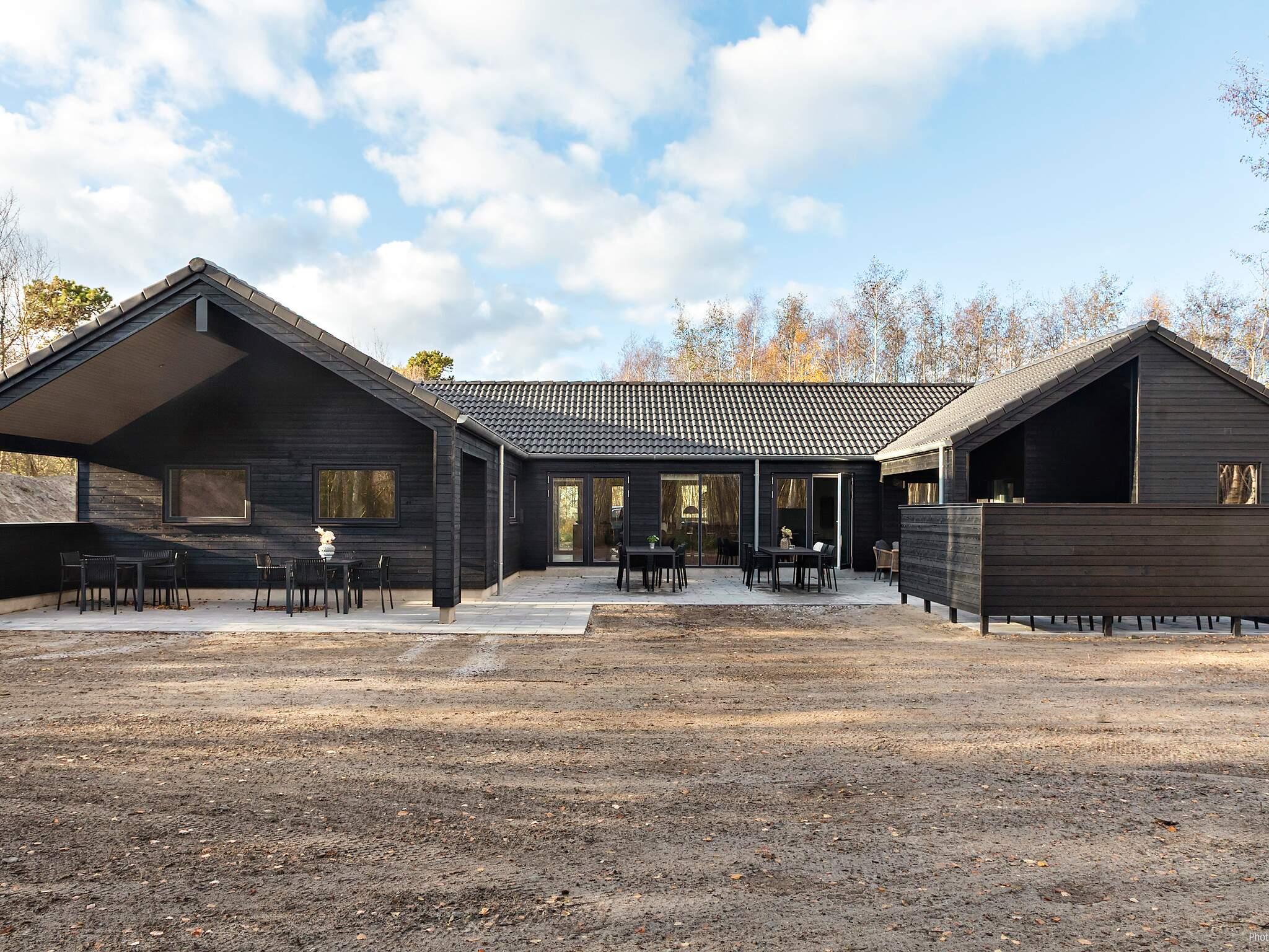 Med 8 soveværelser, 4 badeværelser og en rummelig hems med ekstra soveplads kan hele gruppen være sammen uden at gå på kompromis med komforten. Det store fællesrum er husets hjerte, hvor stuen, spisepladsen og køkkenet smelter sammen. Køkkenet er veludstyret med to ovne, to opvaskemaskiner og to køleskabe, hvilket gør madlavning til store grupper til en leg.
