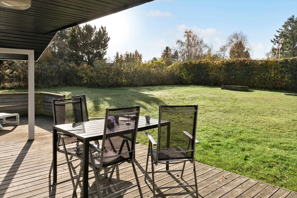 Med 2 gode træterrasseområde, hvor 1 af dem er delvist overdækket, er denne ejendom ideel til al slags vejr. Derudover er der en god carport, samt en stor have med masser af græsplæne til børnene og god beplantning langs grunden.
