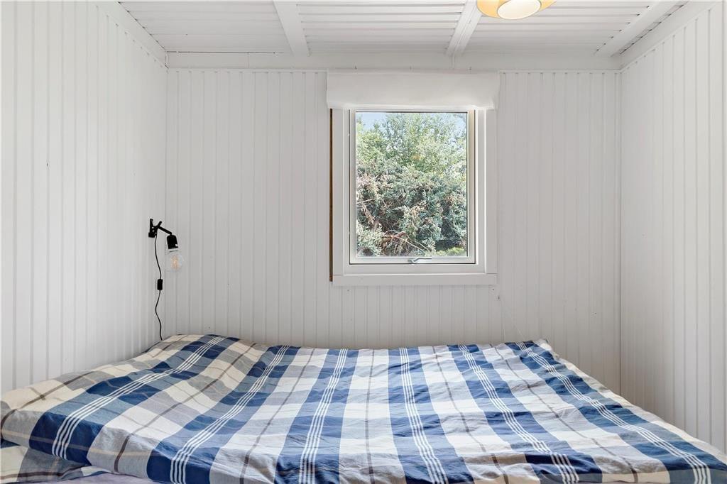 En lille lys fordelingsgang med 2 værelser hvor det ene værelse har en dobbeltseng og det andet en enkeltmandsseng, samt et badeværelse med WC og bruser. Husets hjerte er det åbne køkken/alrum hvor der er køkken, sofaafdeling, spiseområde og udgang til en dejlig terrasse.
