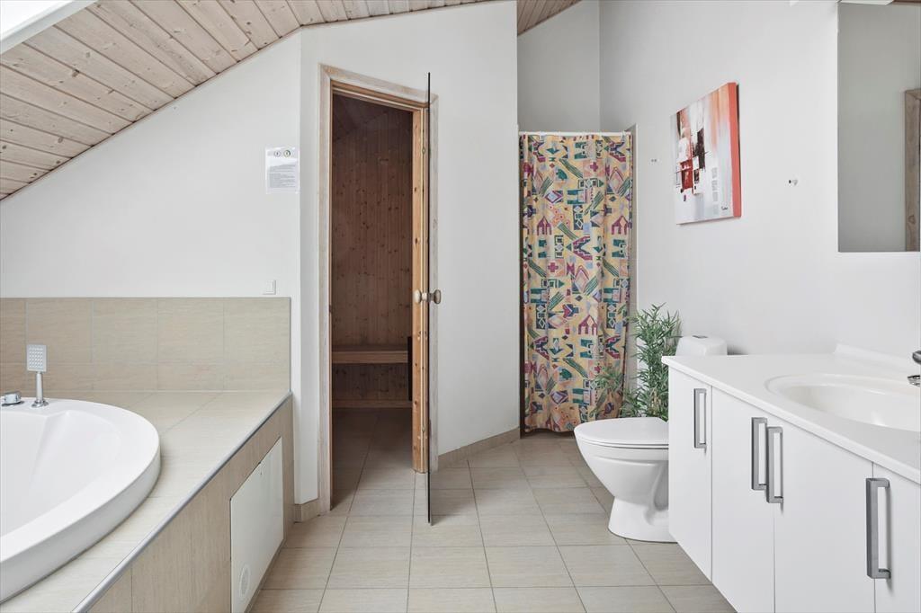 Fritidshuset er indrettet med 4 gode soveværelser, alle værelserne er dobbelte med helt nye senge fra maj 2022, samt en stor hems, hvor der kan sove 4 personer. Derudover har huset 2 flotte badeværelser, som indeholder WC, bruser, vaskemaskine og en tørretumbler. Desuden byder fritidshuset på det store åbne moderne køkken-alrum, i åben forbindelse med stuen som har sofaafdeling og spiseområde, samt udgang til den store dejlige terrasse og haven. Fra stuen er der adgang til husets aktivitetsrum, som indeholder både billardbord og bordtennis, ved aktivitetsrummet af finder vi badeværelse nummer 2 med WC, bruser, Spabad og en lækker sauna.
