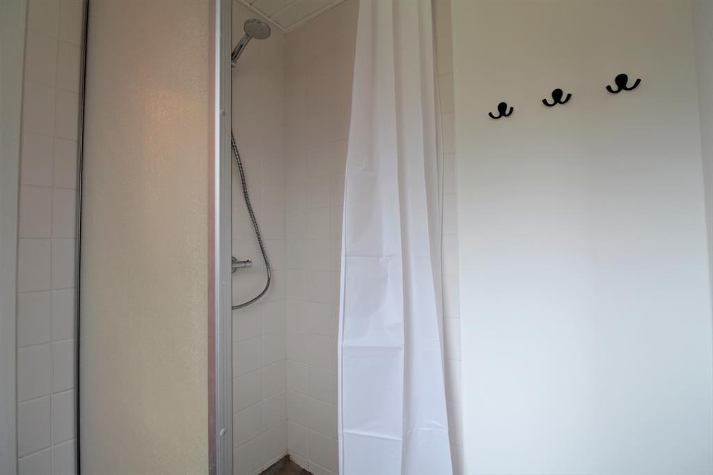 Velindrettet nyrenoveret fritidshus med hyggeligt køkkenalrum med spiseområde nær køkkenet og tv-stue med sofa og lænestol. Fra køkkenalrummet er der indgang til separat toilet, bad samt soveværelse med dobbeltseng og skabsplads. Der er desuden direkte forbindelse fra køkkenet til en dejlig overdækket terrasse samt den hyggelige have. Derudover er der et fint opvarmet anneks med to sovepladser.