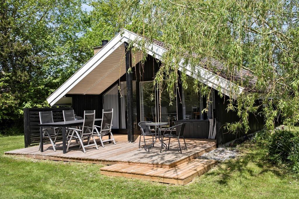 Huset er indrettet med en entré/fordelingsgang, hvorfra der er indgang til badeværelse med toilet, brusekabine og vaskemaskine. Videre ad gangen kommer man til husets 2 soveværelser, hvoraf det ene er med en dobbeltseng, mens det andet er med en enkeltseng som kan foldes ud til dobbeltseng. Pænt åbent køkken, som blandt andet indeholder ovn, opvaskemaskine, køleskab med frys og en emhætte. Den flotte stue er opdelt i en spiseafdeling og en sofaafdeling. I sofaafdelingen findes der tv, med både danske, tyske, norske og svenske kanaler, samt brændeovn. Udgang fra stuen til terrassen, samt fantastiske have, hvor solen og sommerdagene rigtig kan nydes.