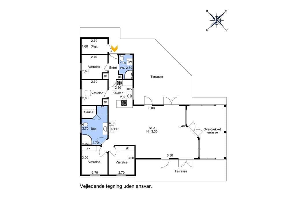 Ejendommen byder på 2 gode badeværelser, 4 soveværelser, en lille entré, et flot køkken i åben forbindelse med den fantastiske opholdsstue. Stuen indeholder en spiseafdeling i nærheden af køkkenet, og en sofaafdeling samt hyggekroge i den anden ende. Fra stuen er der ligeledes udgang til den overdækkede terrasse samt haven.