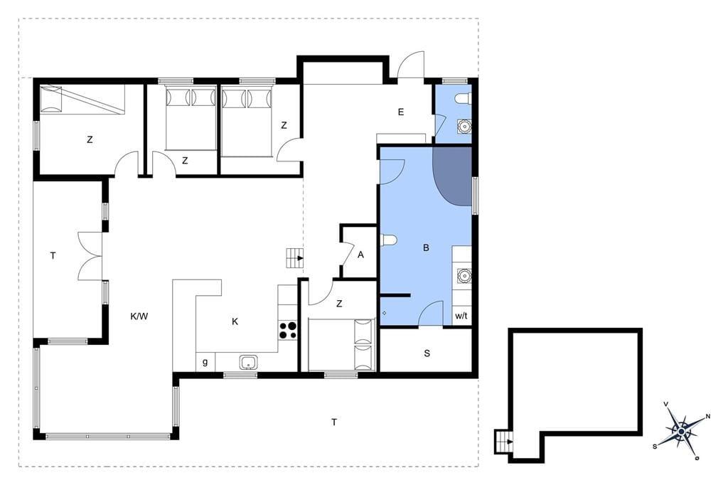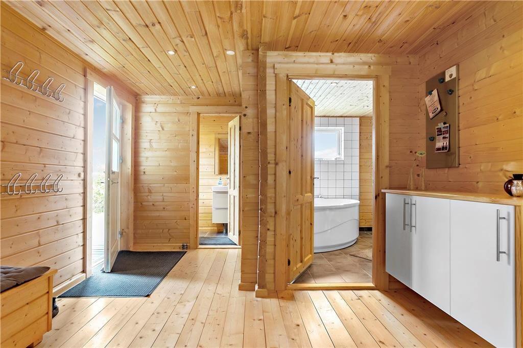 Velholdt, flot og lyst indrettet fritidshus, med 4 gode soveværelser hvor de 3 af soveværelserne har dobbeltseng og det sidste værelse har en køjeseng. Et stort og flot indrettet badeværelse, med WC, brusekabine, Sauna og et spabad, samt et lille gæstetoilet på gangen.