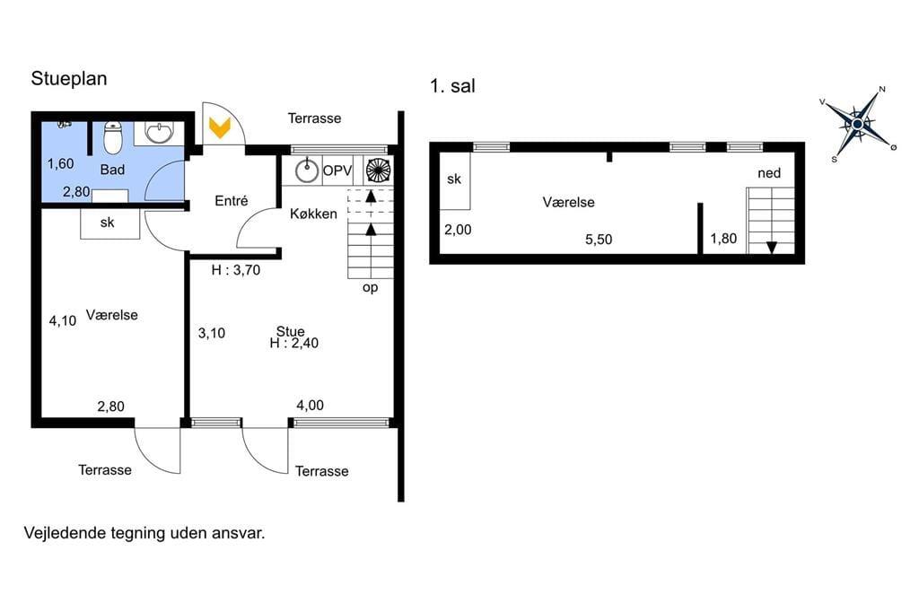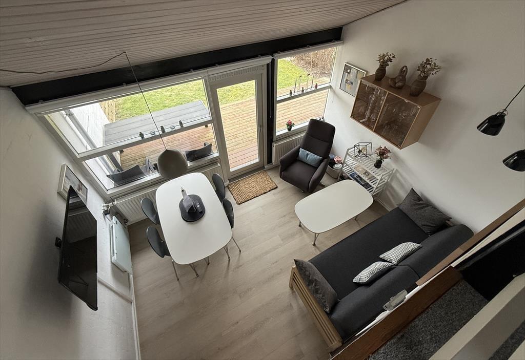 Til lejligheden hører 2 små terrasser, en lille hyggelig privat terrasse på bagsiden af lejligheden, og en lille terrasse foran lejligheden. Havemøbler på begge terrasser.