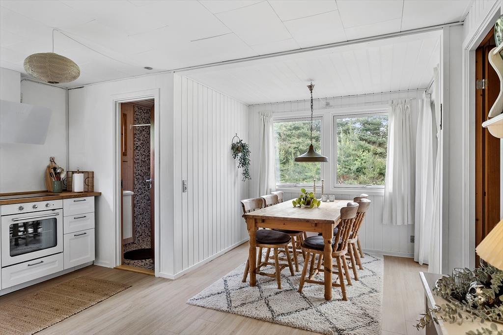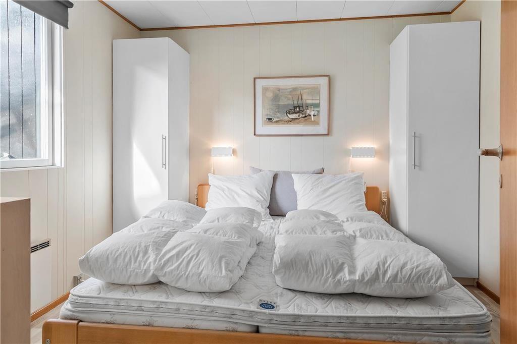 Charmerende feriehus som indeholder: Entre, 3 soveværelser, 2 værelser med dobbeltseng og et værelse med 2 enkeltmandssenge, endvidere byder feriehuset på et stort køkken-alrum med spiseafdeling, sofaafdeling, samt 2 udgange til 2 skønne terrasseområder, samt 2 badeværelser begge med WC og bruser.