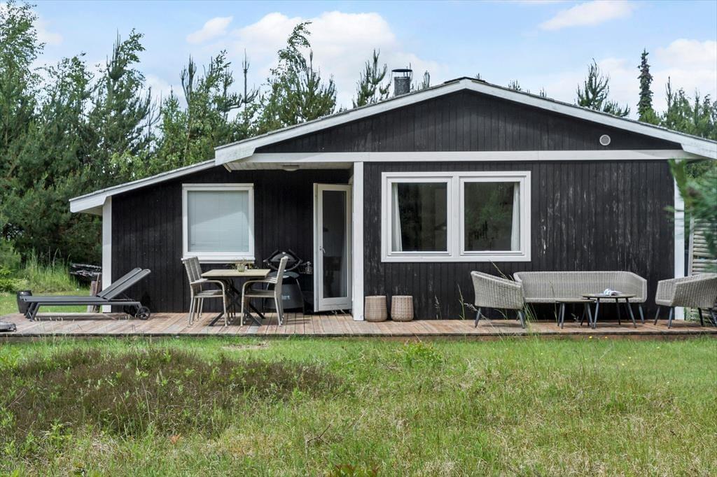Feriehuset er beliggende på en 1295 kvm stor naturgrund, med masser af plads til sjov og leg. Til feriehuset er der 2 skønne terrasser, den ene er en hyggelig lille overdækket og den anden en dejlig stor træterrasse.