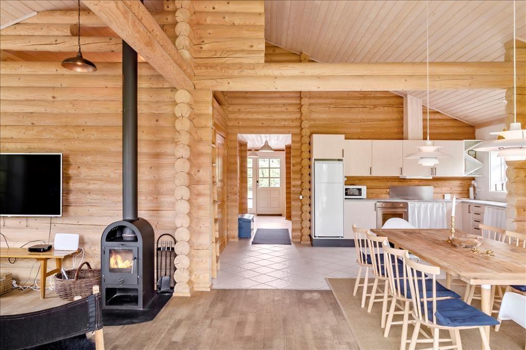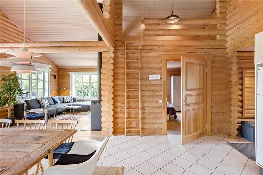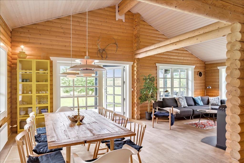 Dette skønne bjælkehus emmer af den helt rigtige sommerhusstemning og tilbyder 3 gode soveværelser, hvoraf 2 af dem er med en dobbeltseng og det sidste værelse indeholder 1 køjeseng og en sovesofa/udtrækningsseng. Derudover er der en hyggelig hems i køkken-alrummet med 2 madrasser. I huset er der 2 badeværelser hvor det ene indeholder spabad, bruser, WC, vaskemaskine og tørretumbler og det andet badeværelse indeholder bruser, wc og en god sauna til at varme sig på, på de kolde dage.