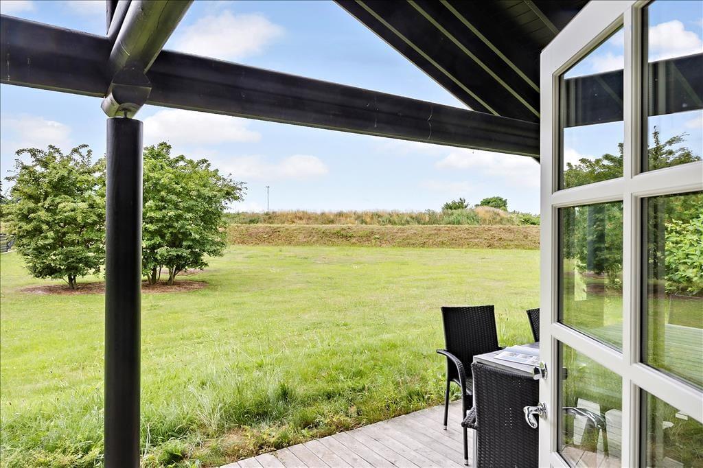Fra stuen er der ligeledes udgang til den lækre syd-vestvendte træterrasse, hvor især aftensolen kan nydes i perfekte omgivelser. Fra terrassen træder du direkte ud på et stort grønt ude areal, som tilbyder masser af plads til boldspil og leg med hele familien samt mulighed for udkig til de smukke marker som omkranser sommerhusområdet.