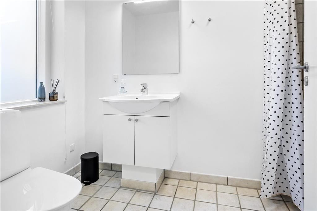 Indrettet med entré med adgang til badeværelse med WC, håndvask og bruseniche, og til et soveværelse med 2 enkeltsenge og god skabsplads. For enden af entréen kommer man ind til husets flotte og lyse køkken-alrum, hvor køkken afdelingen indeholder alt hvad hjertet begærer, mens resten af rummet indeholder et spisebord med stole og en sovesofa. Fra køkken-alrummet er der også udgang til boligens dejlige terrasse.