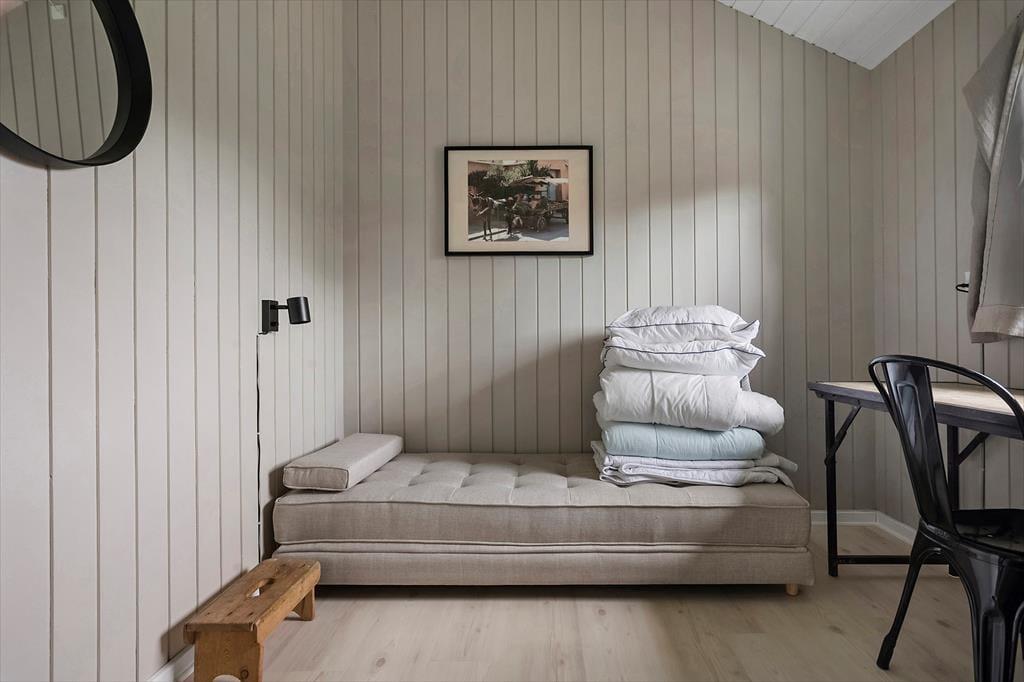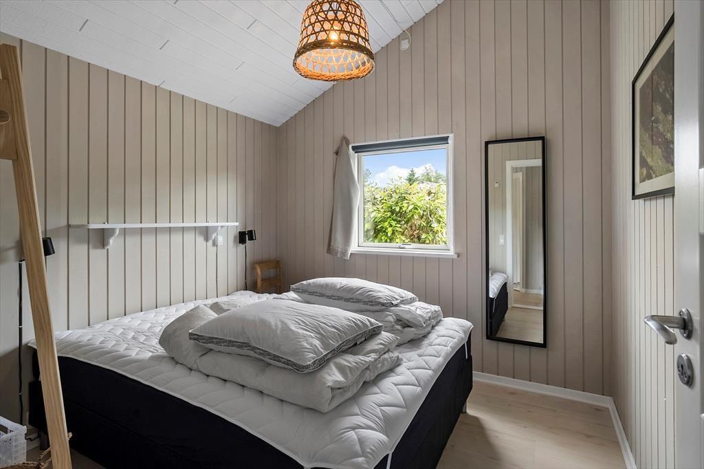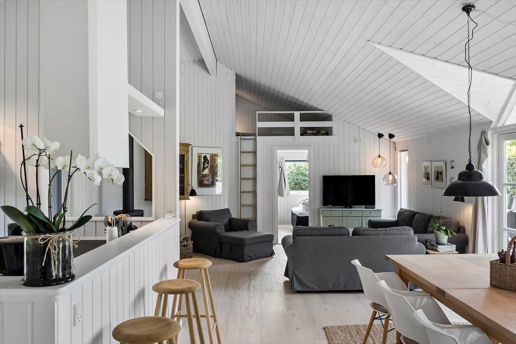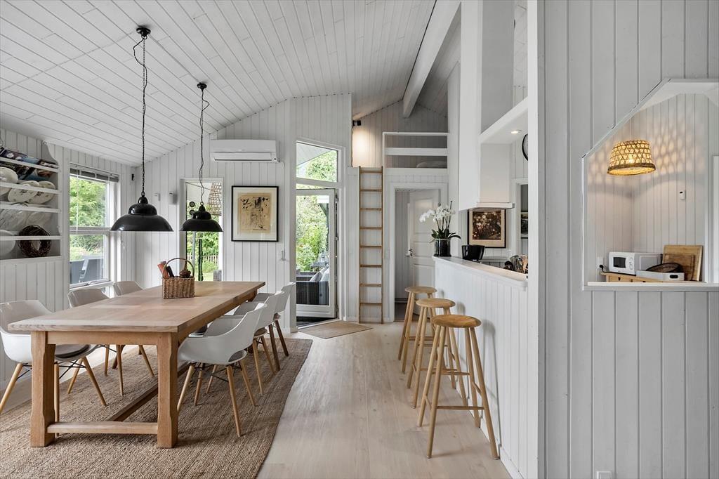 Sommerhuset er nyrenoveret og fremstår i dag med et renoveret og stilrent køkken, to elegante badeværelser og fire rummelige soveværelser, det ene med en daybed (som kan slås ud) og skrivebord med plads til computeren eller til at tegne ved – alt holdt i lyse farver og skandinavisk design, der indbyder til ro og afslapning. Her er højt til loftet, lækre materialer og en atmosfære, der oser af hygge, kvalitet og gennemtænkte løsninger.