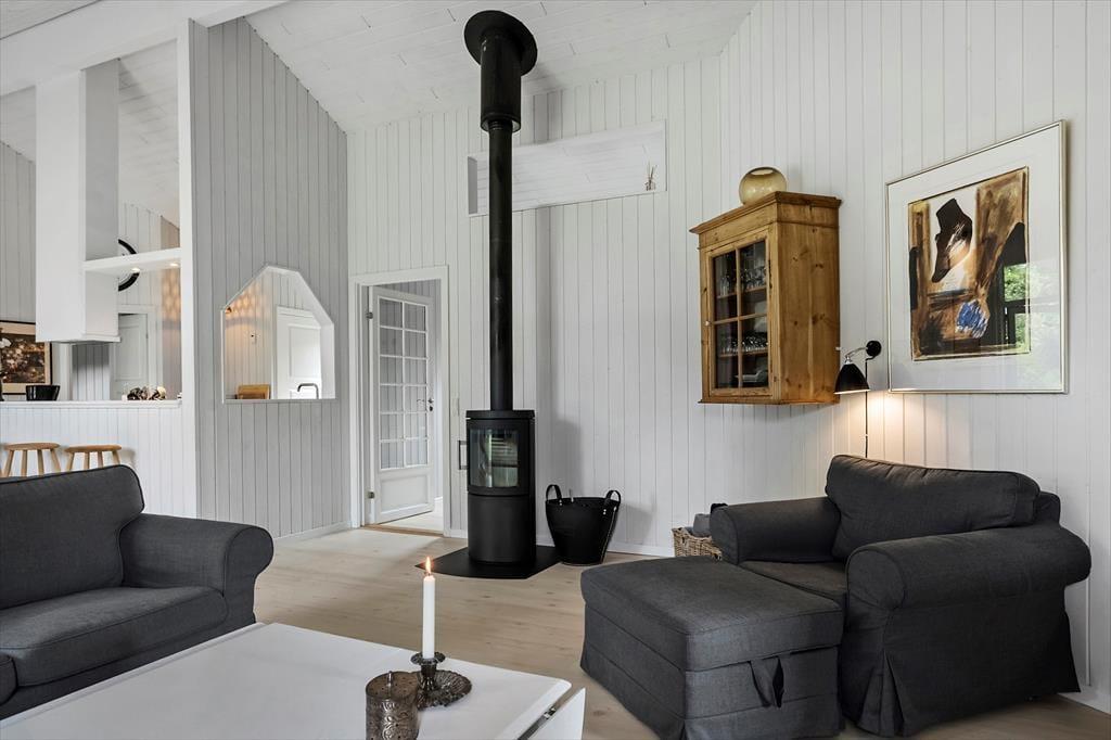 I den store opholdsstue kan I samle jer i bløde sofaer til et glas vin eller en god film, mens brændeovnen kan spreder varme og hygge på kølige aftener. Herfra er der direkte udgang til den solrige træterrasse, hvor loungemøbler og grill (står i skuret) står klar til lange, lune sommeraftener.