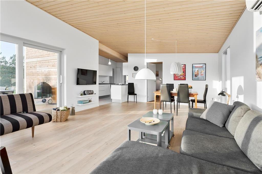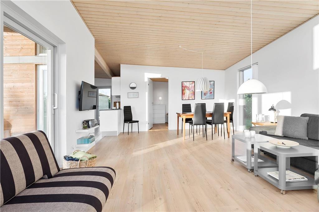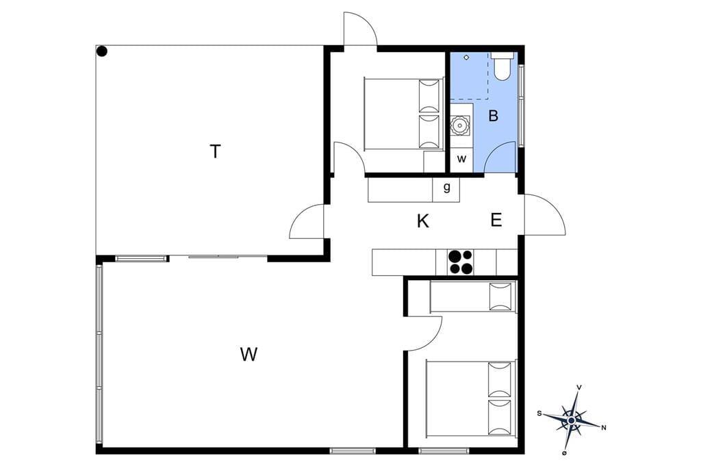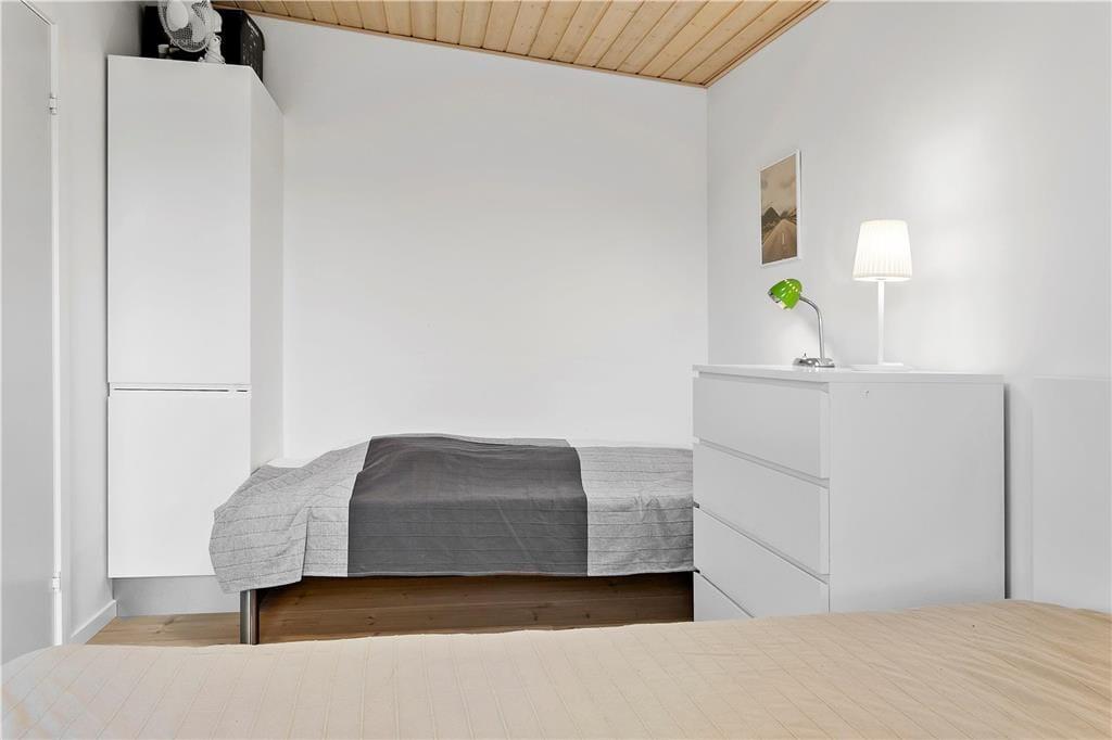 Moderne fritidshus som indeholder næsten alt hvad hjertet begærer, men i hvert fald sætter de perfekte rammer for en god og afslappende ferie. Boligen byder på en lille entré i forbindelse med køkkenet, adgang til flot flisebadeværelse med bruser og WC. 2 gode soveværelser, hvoraf det ene er med en dobbeltseng, mens det andet indeholder en dobbeltseng på 140x200 cm, + en enkeltseng. I stuen findes også en god sovesofa.
