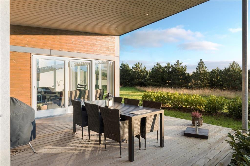 Udenfor tilbyder ejendommen en skøn overdækket træterrasse, samt nedgang til haven, som er godt tilplantet med træer og busker hele vejen rundt.