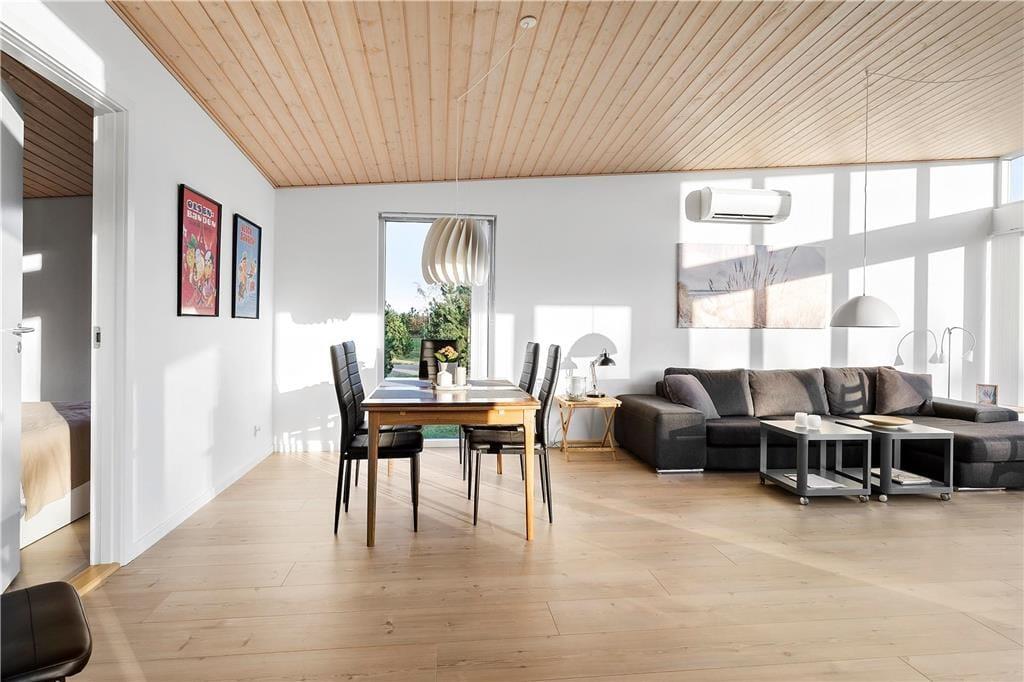 Fra køkkenet er der gennemgang til den dejlige stue, som byder på spisebord, sofaafdeling og udgang til terrassen.