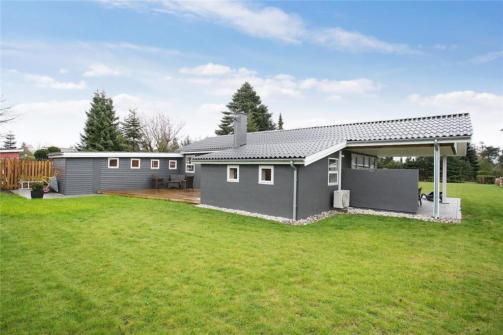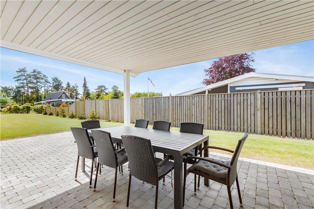 Med et helt fantastisk udendørsareal, med en stor og lækker fliseterrasse som er delvist overdækket, samt en stor og flot græsplæne, som indbyder til masser af boldspil og leg for både store og små.