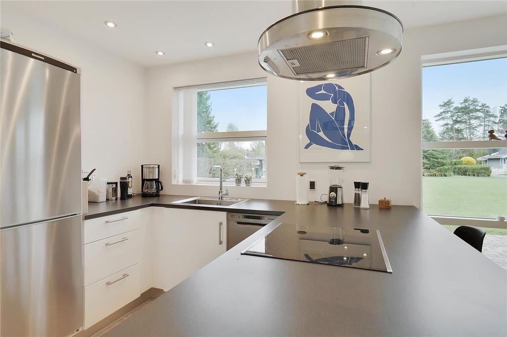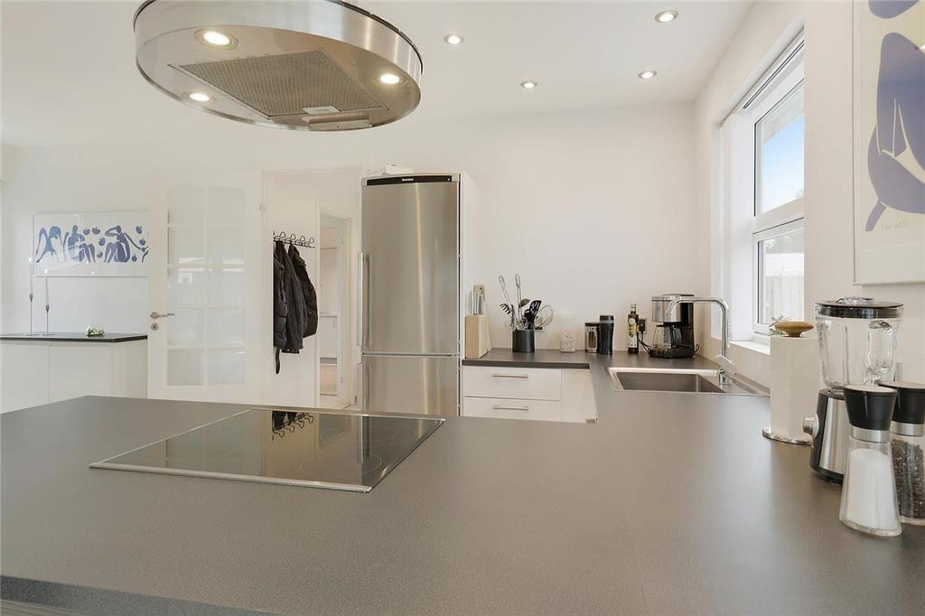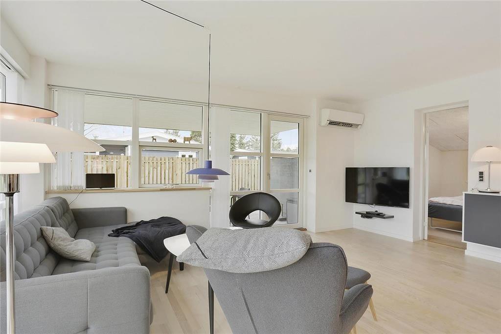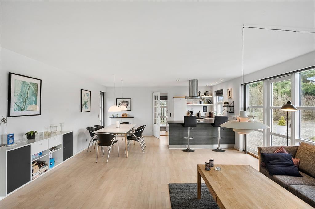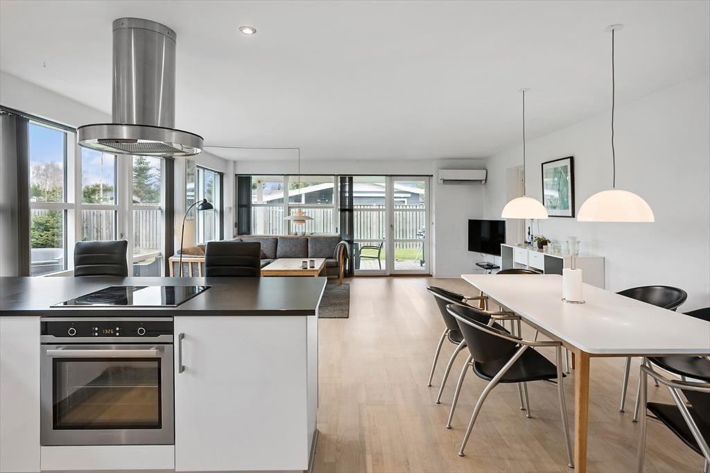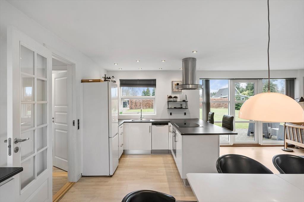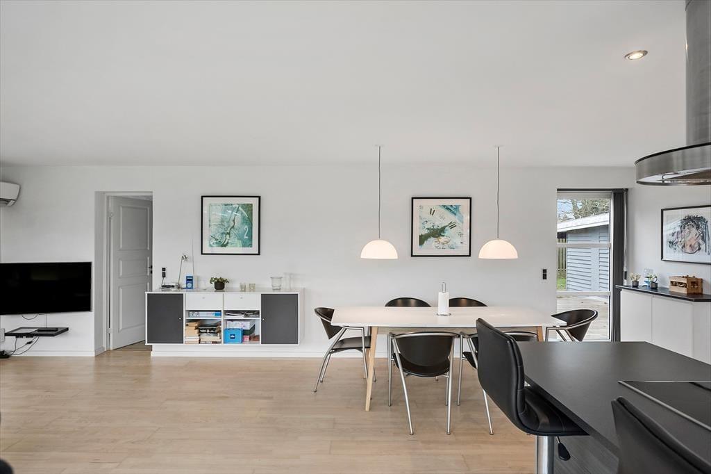 Videre gang fra entréen kommer man til husets dejlige køkken-alrum, hvor det første man møder er det flotte og åbne køkken, som indeholder alt hvad der til ferien behøves. Ved køkkenet står husets store spisebord, og videre gennem rummet ankommer man til stue-afdelingen, som indeholder tv, sofa og lænestole. Hele køkken-alrummet er omkranset af store og lækre vinduespartier, som altid giver et dejligt lysindfald, samt god udkik til haven. Fra stuen er der adgang til husets sidste soverum, som indeholder en dobbeltseng og god skabsplads.