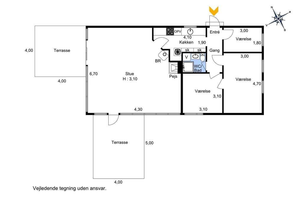 Sommerhuset ligger et stenkast fra Marielyst Torv hvor man finder indkøbsmuligheder, shopping og spisesteder. Marielyst Badestrand ligger under 900 m væk.