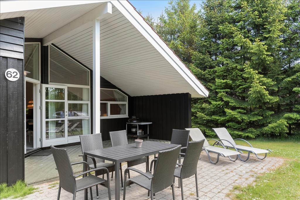 Sommerhuset er beliggende på en 927 kvm grund, med en skøn delvist overdækket terrasse. Derudover er der en stor græsplæne, hvor der er plads til en masse sjov og leg.