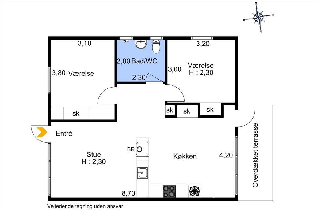 Det perfekte hus til børnefamilien. Indrettet med 2 gode soveværelser, et dejligt køkken/stuerum med brændeovn og udgang til terrasse på begge sider af boligen. Derudover et pænt flisebadeværelse med WC og brusekabine.