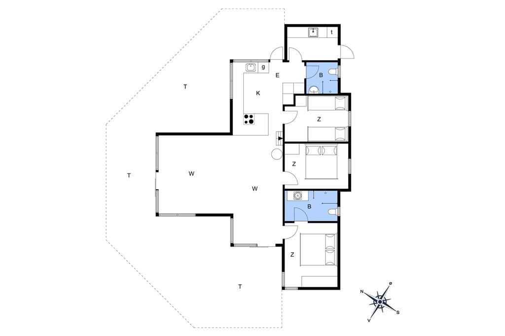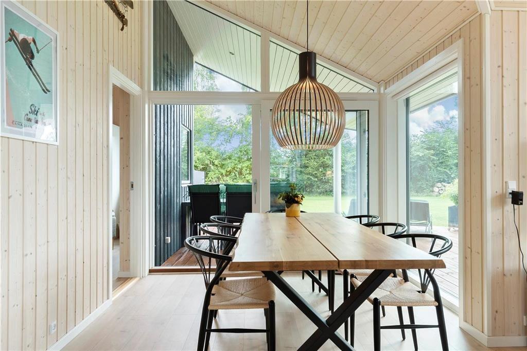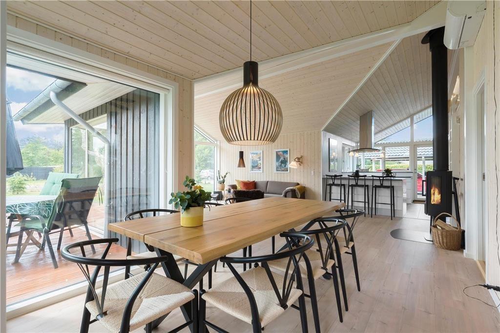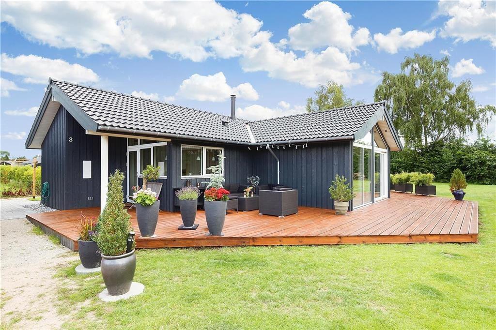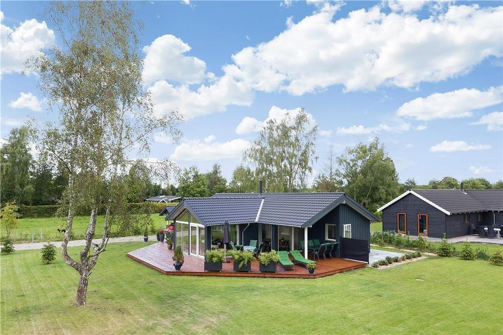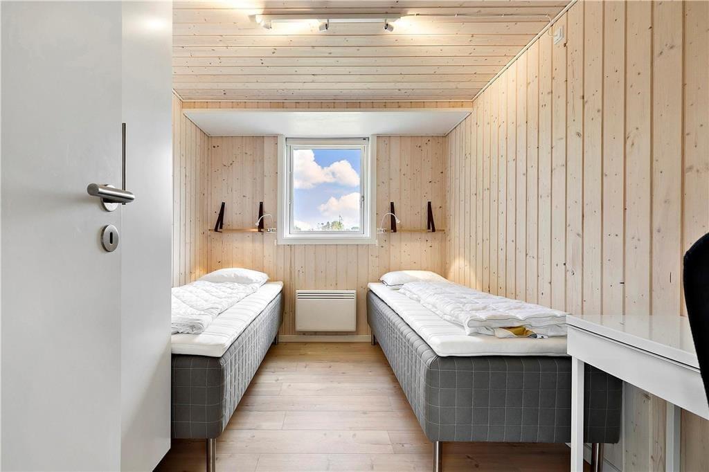 Fritidshuset byder på en entre, 3 gode soveværelser hvor der er dobbeltsenge i de 2 af dem og 2 enkeltmandssenge i det sidste soveværelse, et flot køkken-alrum og en stor stue med spiseområde og sofa arrangement, fra stuen er der udgang til en stor terrasse. Endvidere byder fritidshuset på 2 badeværelser med WC og bruser i dem begge.