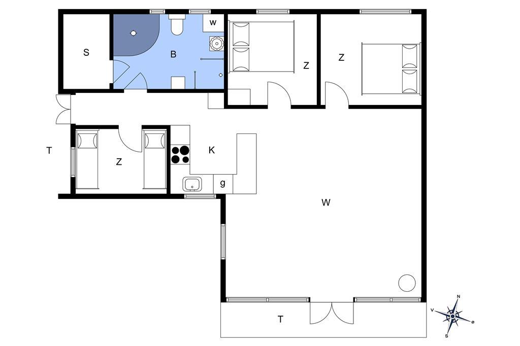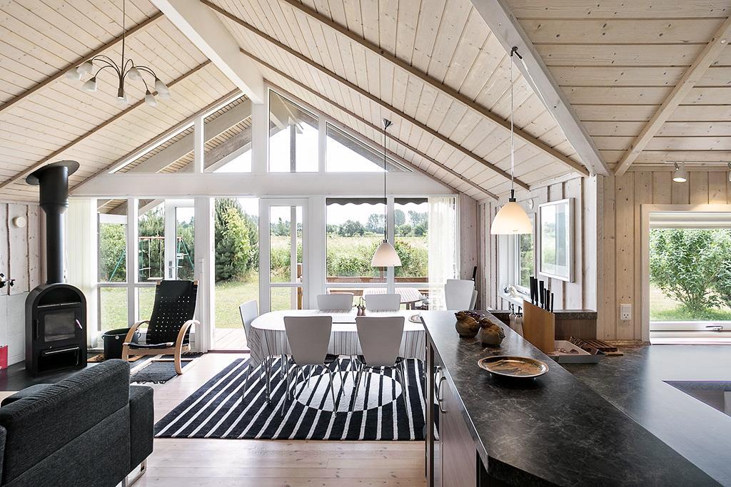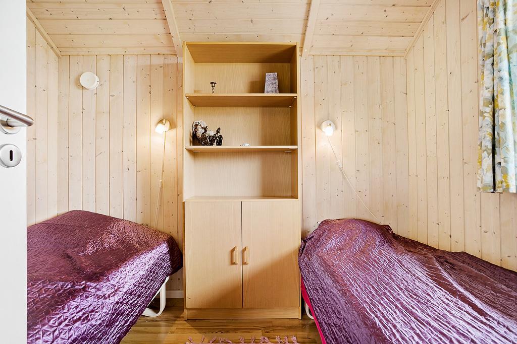 Dejlig lyst fritidshus, indrettet med 3 soveværelser, hvoraf 2 af dem er med en dobbeltseng, mens det sidste er med 2 enkeltsenge. Husets flotte og moderne badeværelse indeholder både sauna og spabad, men selvfølgelig også et WC, en brusekabine og en vaskemaskine.
