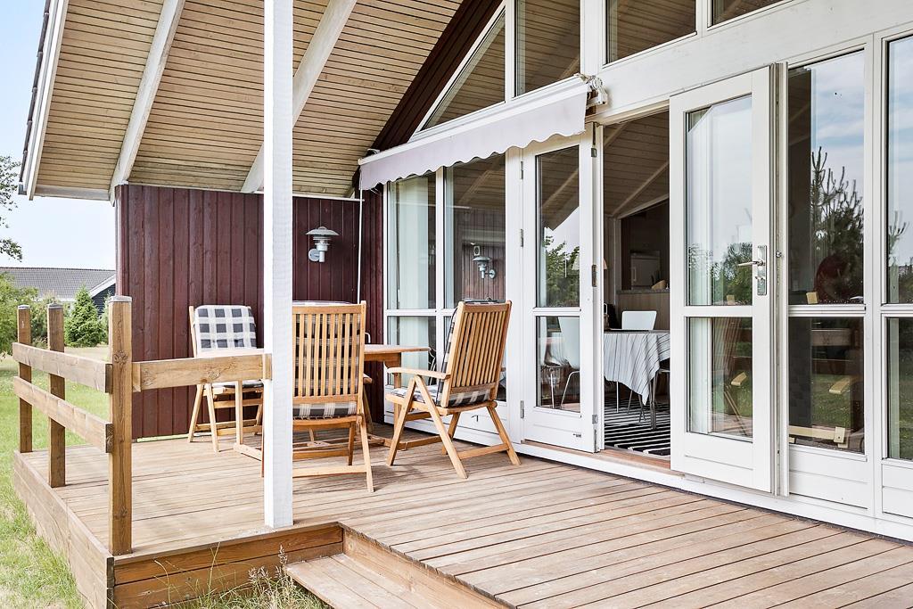 Godt beliggende på en dejlig grund med fin græsplæne og masser af fred og ro. Den skønne træterrasse som har sol hele dagen, skaber rammerne om mange gode timer med familien i den danske sommer.