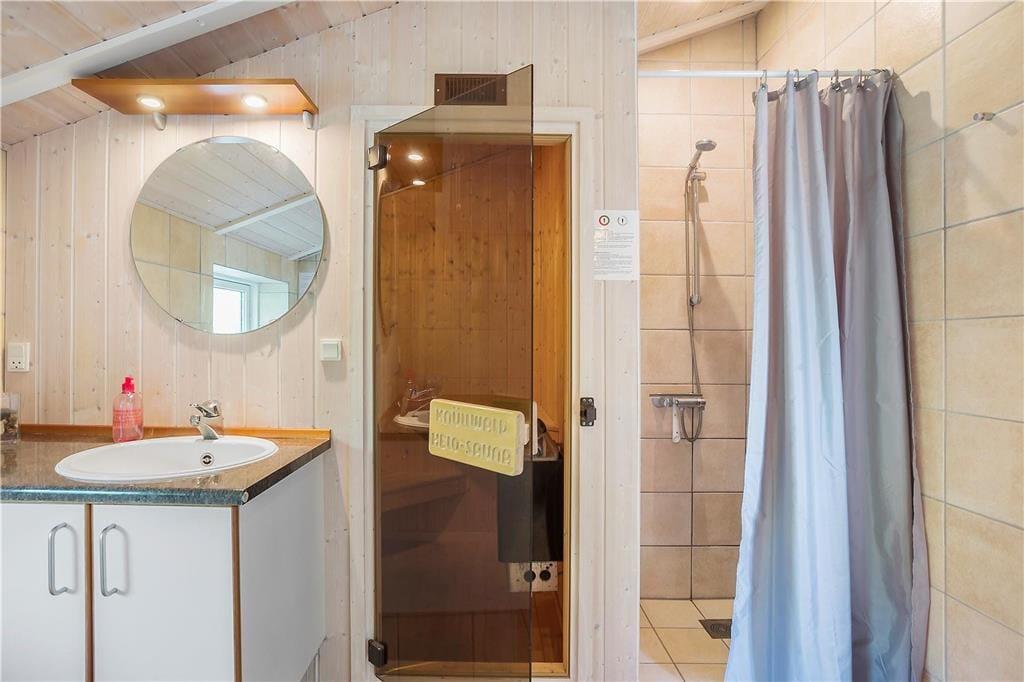 Feriehuset byder på 3 gode soveværelser, hvoraf det ene af dem er med en dobbeltseng og de sidste 2 værelser indeholder hver 2 enkeltmandssenge, samt en hems med 2 madrasser, et lækkert badeværelse som indeholder spa, sauna, bruser og WC.