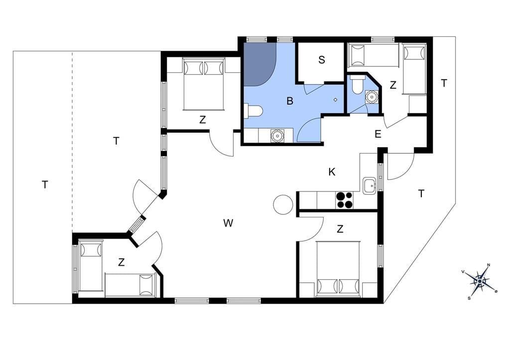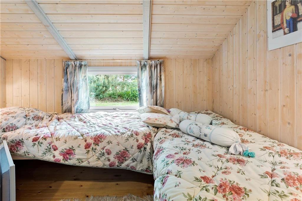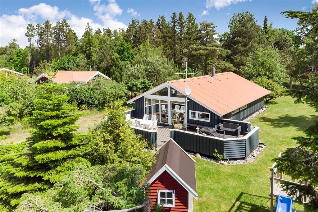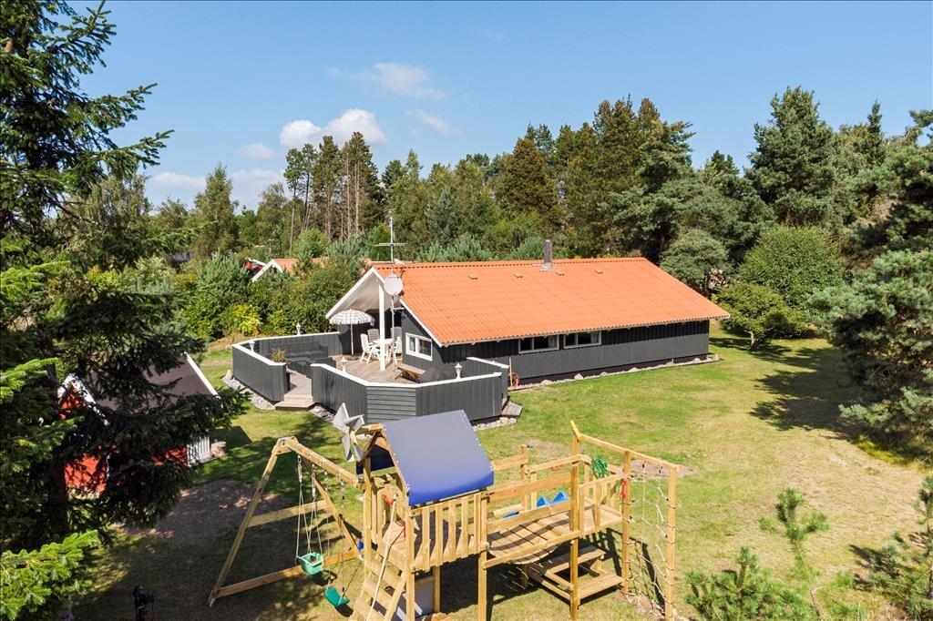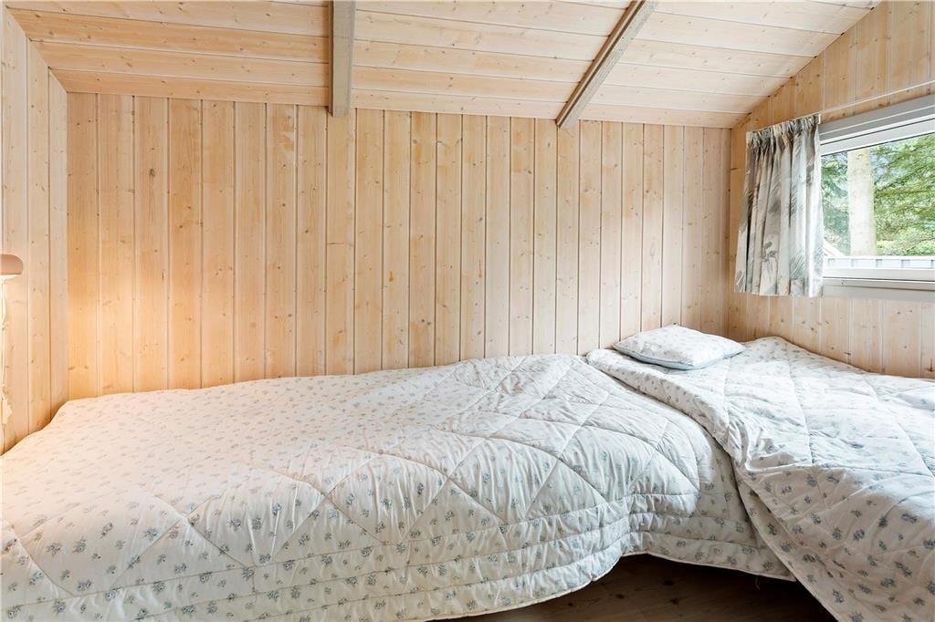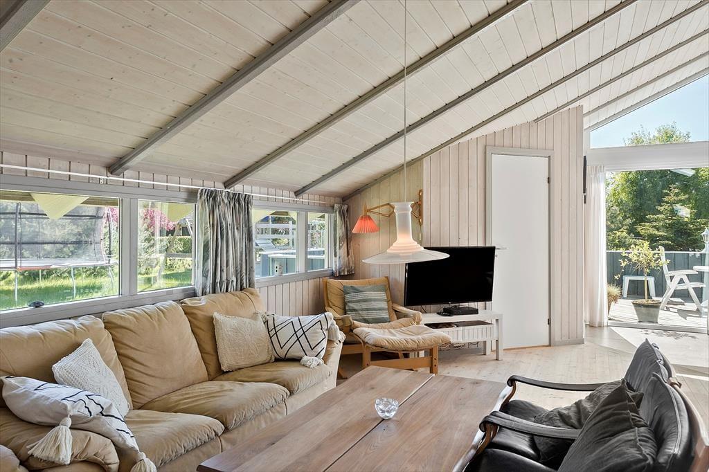 God og lys indretning, med højt til loftet overalt i huset. Indrettet med indgang til en lille entré, med adgang til et soveværelse samt badeværelset og gæstetoilettet. Videre gang til køkkenet, som indeholder alt hvad der til ferien behøves, og som fører en videre ind til den store og godt indrettede stue, som fremtræder i lys og indbydende stand. Fra stuen er der adgang til husets 3 sidste soveværelser, samt udgang til den skønne træterrasse som tilbyder havemøbler og en lille overdækning.