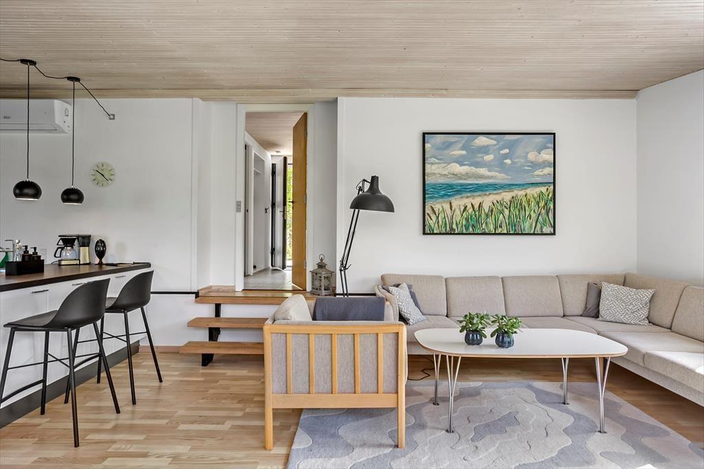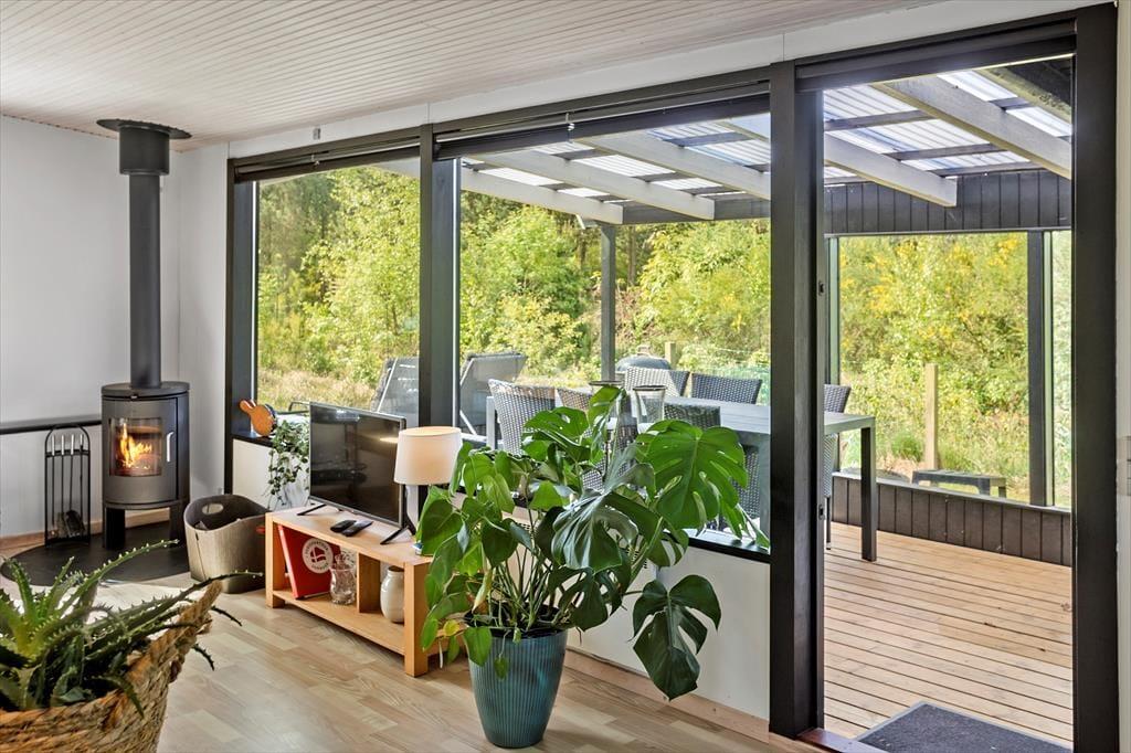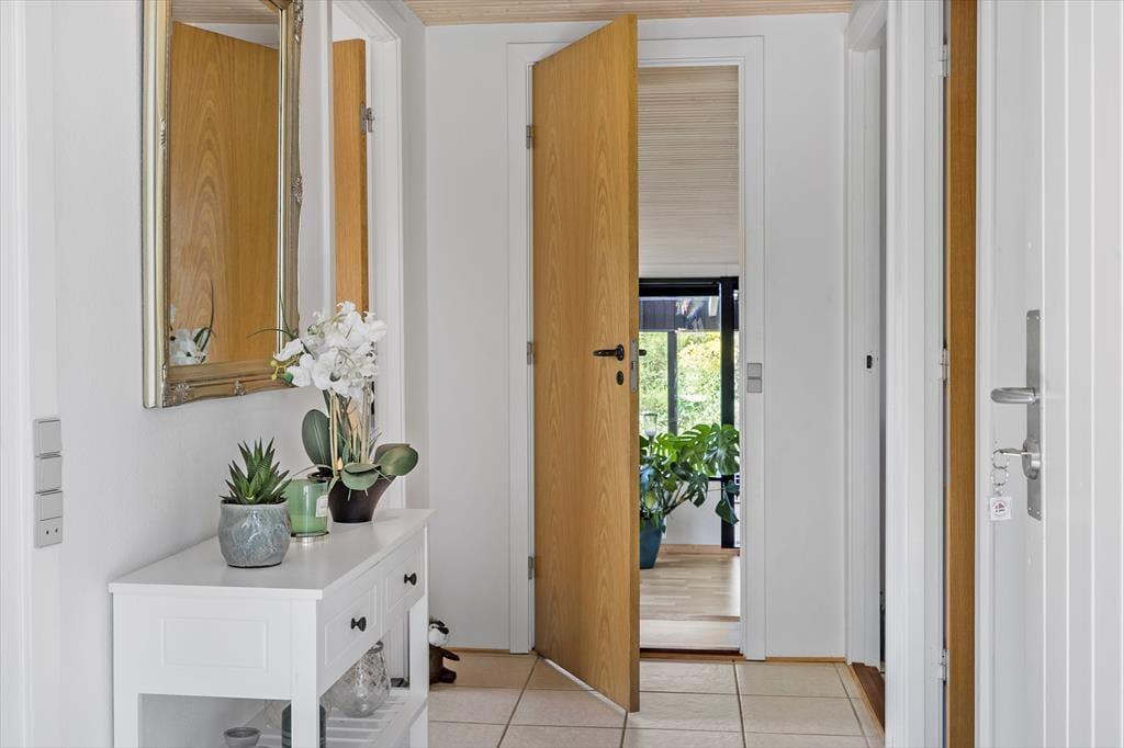 Sommerhuset indeholder: Entré, 3 gode værelser, pænt badeværelse med WC og bruseniche, pænt køkken i åben forbindelse til den lyse stue med god brændeovn, fra stuen er der direkte udgang til terrassen og haven.