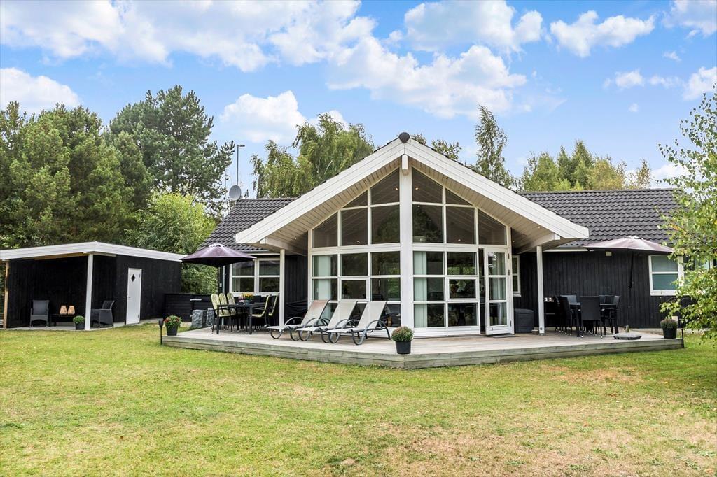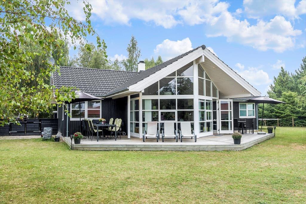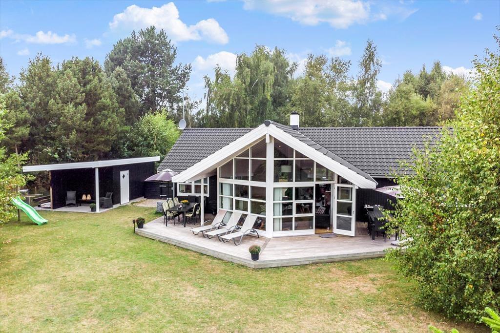 Feriehuset er beliggende på en 1084 kvm stor grund med træer og buske rundt om grunden, samt en stor græsplæne til leg og spil, samt sandkasse, gynge og legehus. Endvidere har feriehuset en skøn træterrasse som indbyder til hyggelige stunder med familien eller venner.