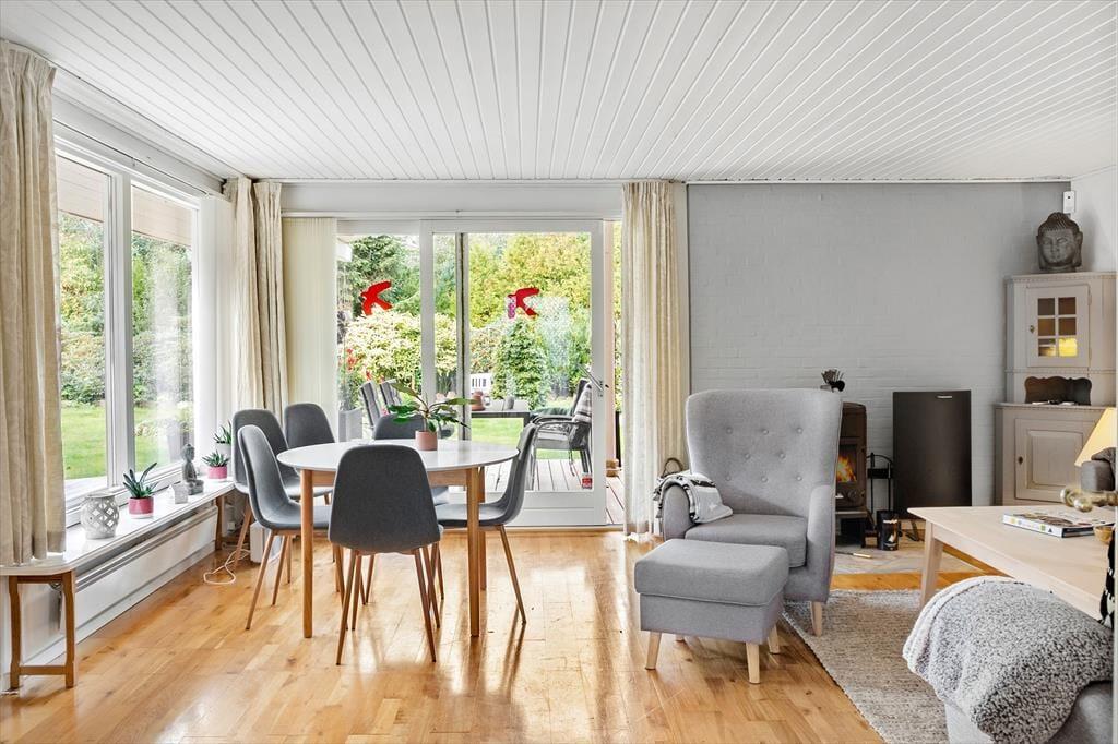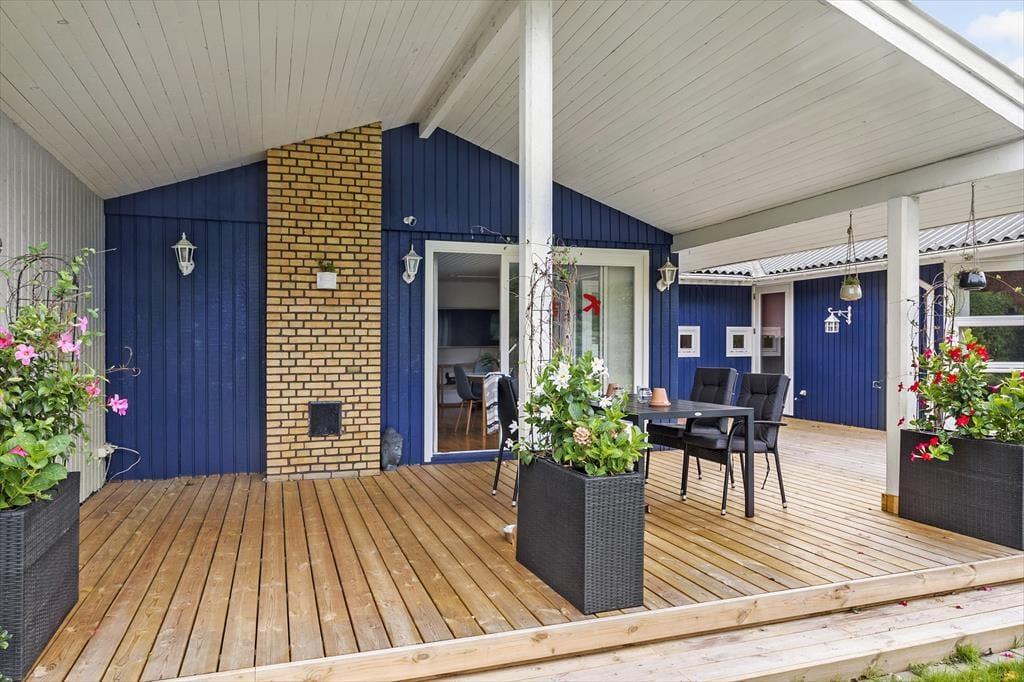 Den skønne træterrasse er perfekt for hygge og sammenkomster med familie og venner.
