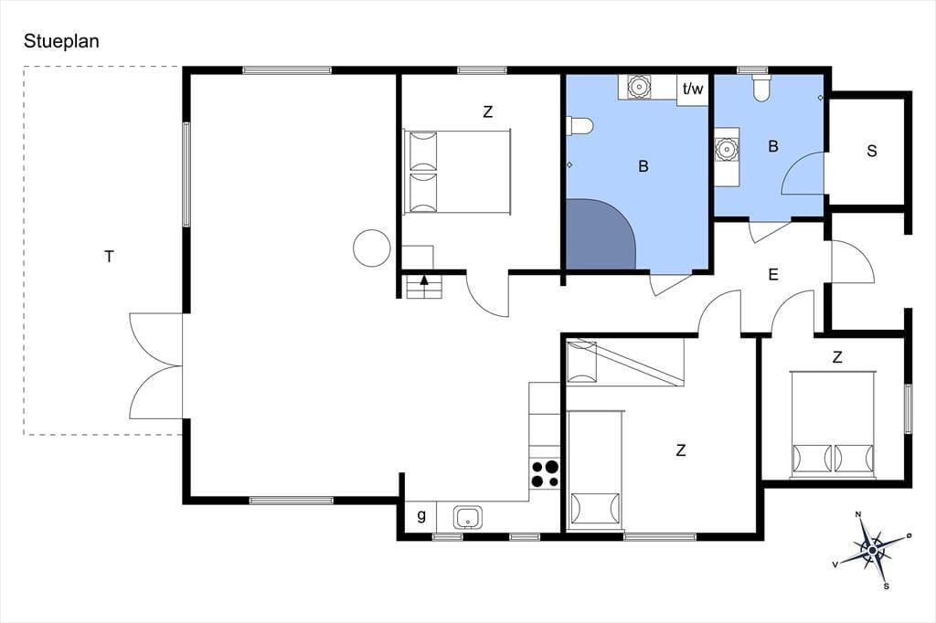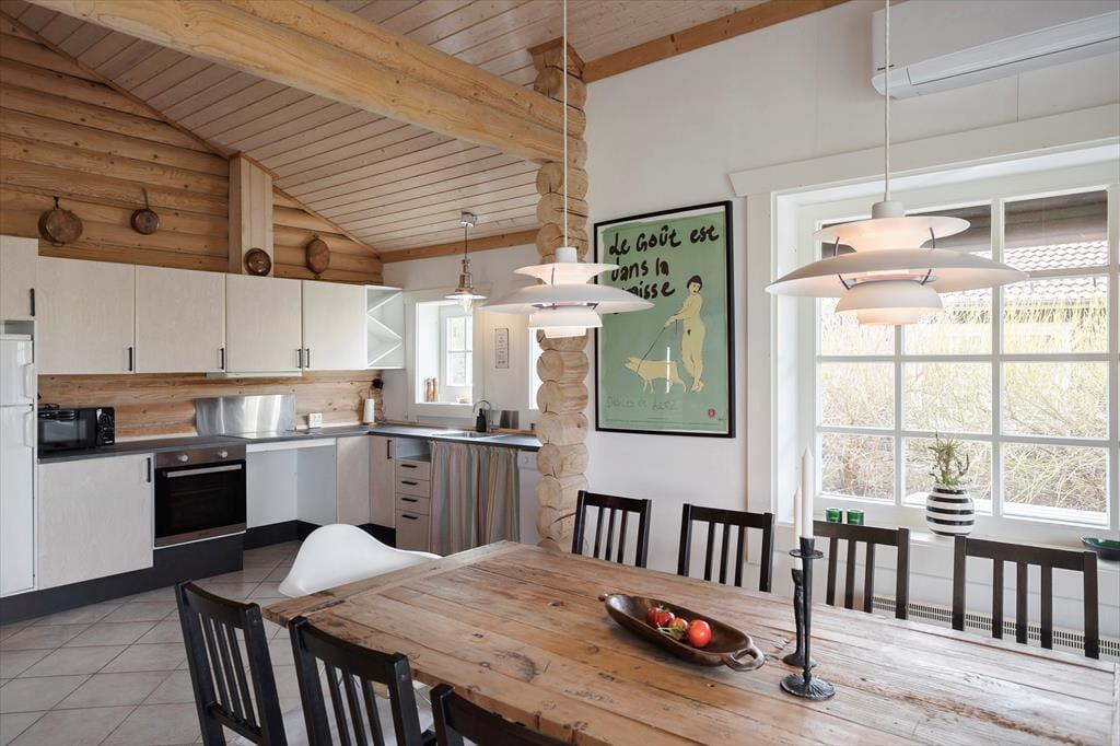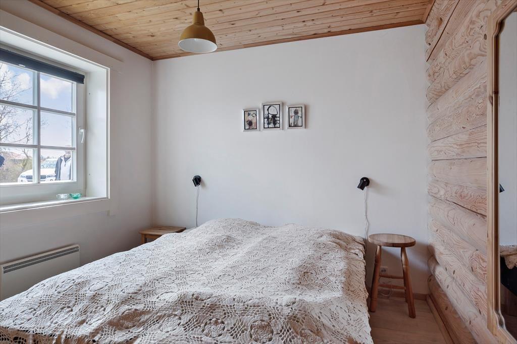 Dette skønne bjælkehus emmer af den helt rigtige sommerhusstemning og tilbyder 3 gode soveværelser, hvoraf 2 af dem er med en dobbeltseng og det sidste værelse indeholder 1 køjeseng og en sovesofa/udtrækningsseng. Derudover er der en hyggelig hems i køkken-alrummet med 2 madrasser. I huset er der 2 badeværelser hvor det ene indeholder spabad, bruser, WC, vaskemaskine og tørretumbler og det andet badeværelse indeholder bruser, wc og en god sauna til at varme sig på, på de kolde dage.