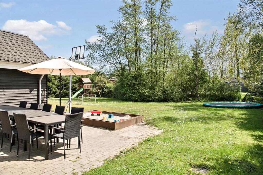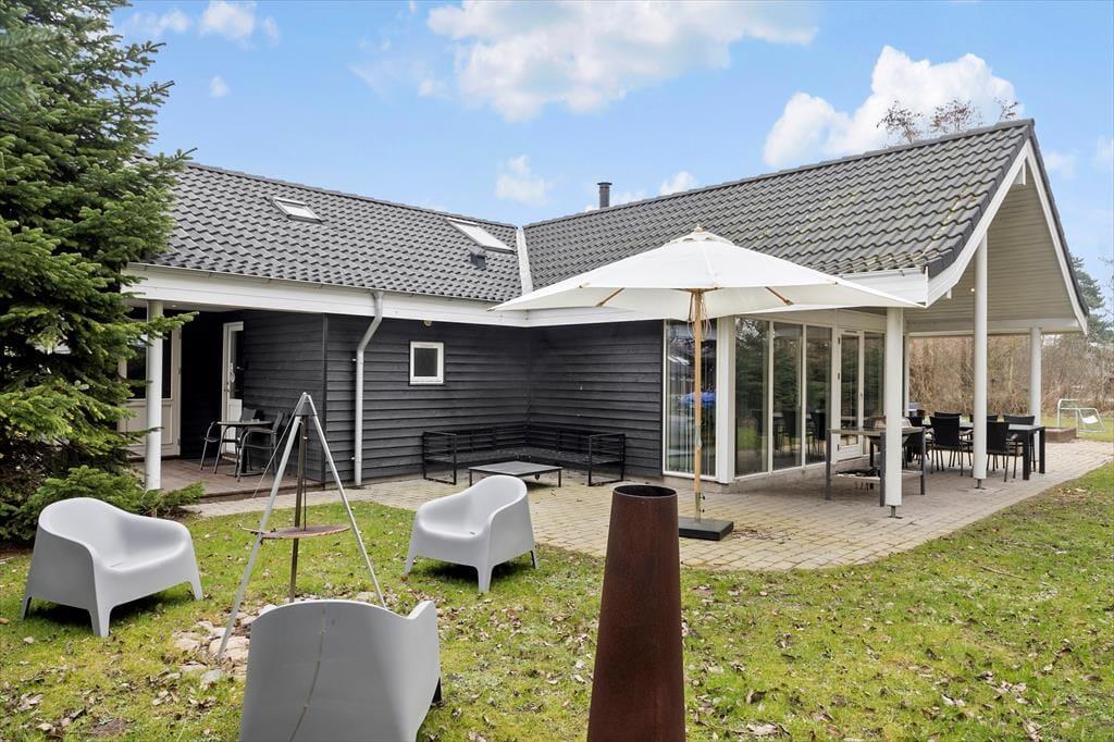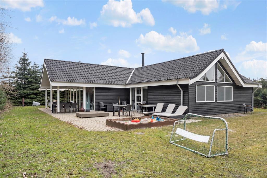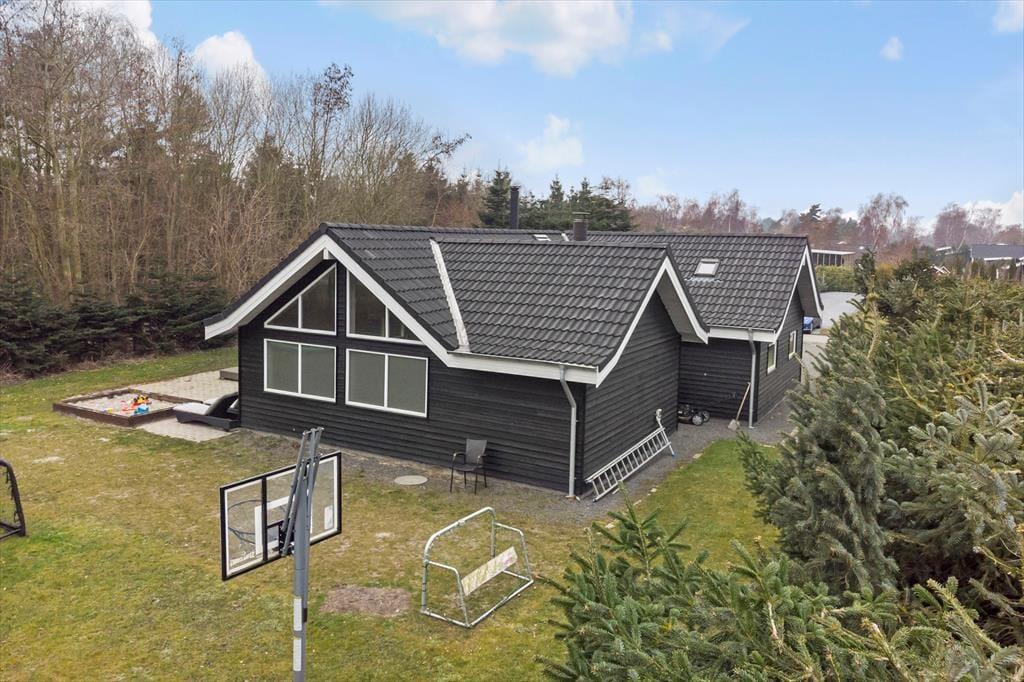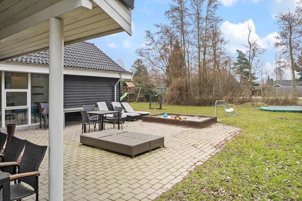 Udendørs finder i en skøn stor terrasse på 80kvm, samt 14 kvm overdækket terrasse med grill og masser af siddepladser til at nyde de dejlige grillaftener. Desuden er der en stor have på en 1100kvm havegrund med sandkasse, gyngestativ, trampolin, petanque og fodboldmål, så her er rig mulighed for at hele familien kan lege.