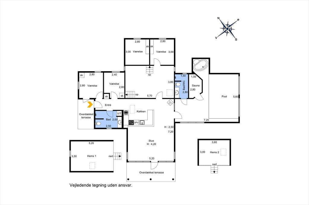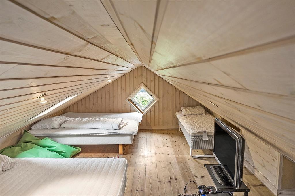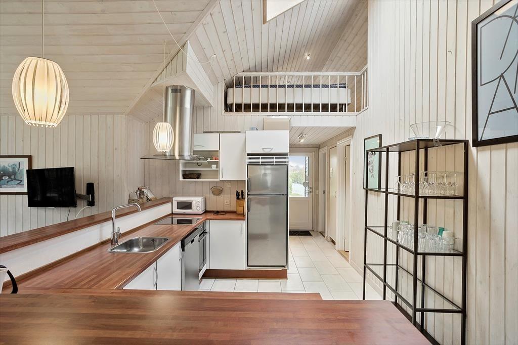 Huset består af 14 sovepladser, fordelt på 4 soveværelser og 2 hemse. Herudover er der flot køkken med alt hvad der kræves for en god ferie. Her er både ovn, kogeplader, mikrobølgeovn, kaffemaskine, rummelig fryser, køleskab samt opvaskemaskine.